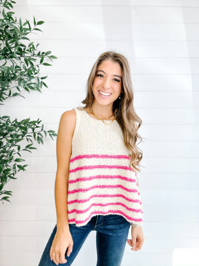 Whether styled with denim, shorts, or layered under a jacket, this boutique sweater tank is an effortless go-to for spring and summer styling.