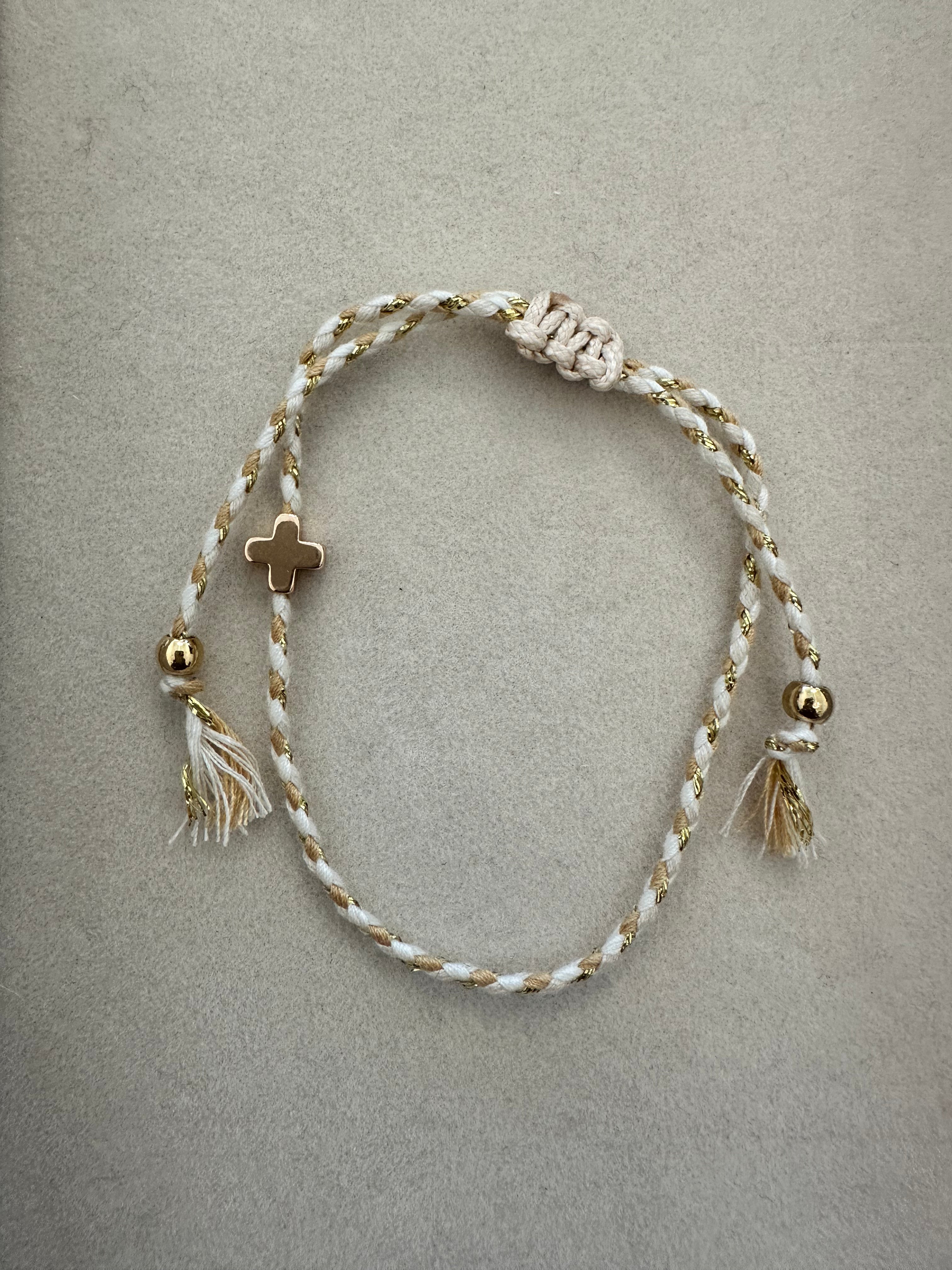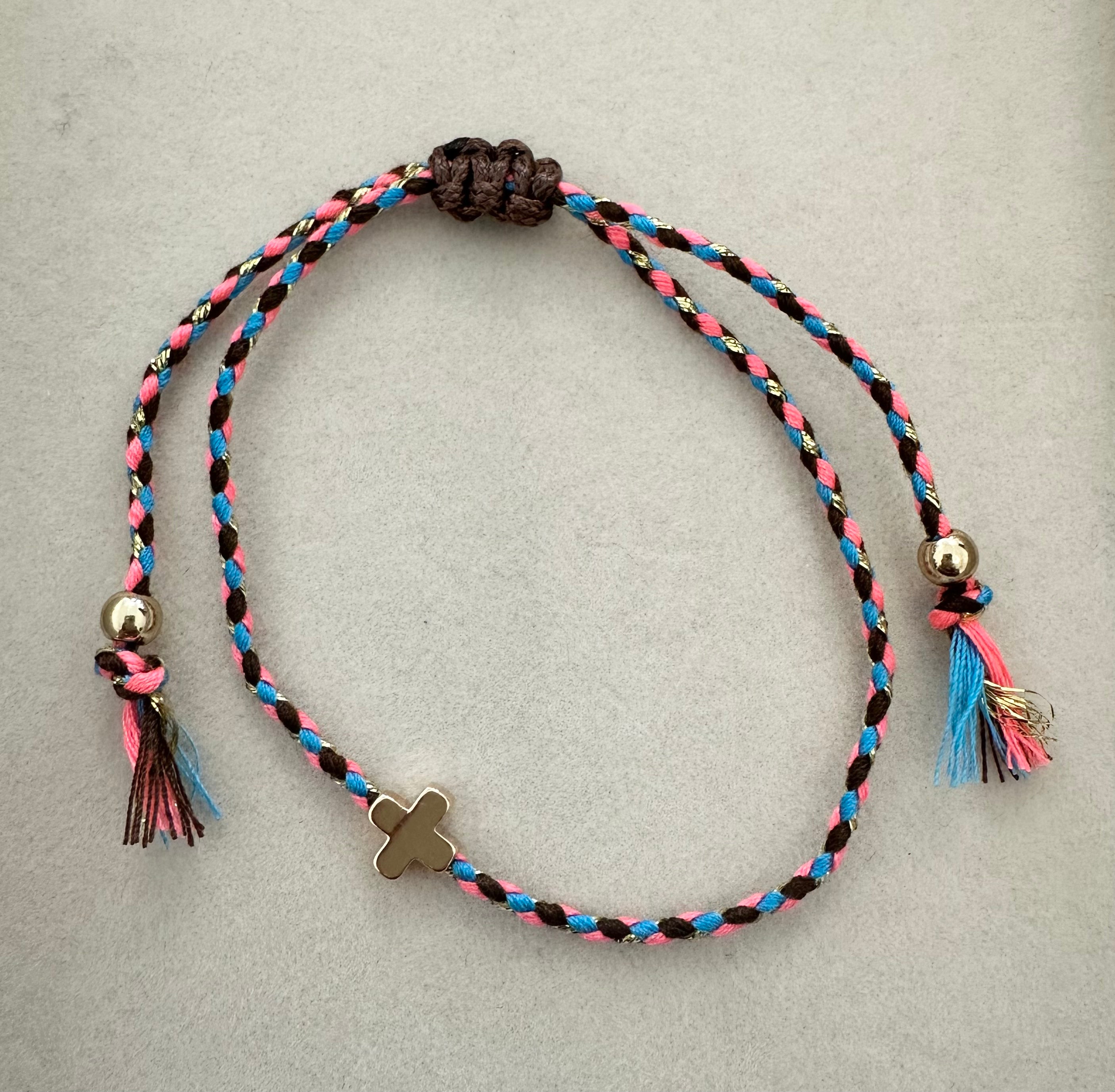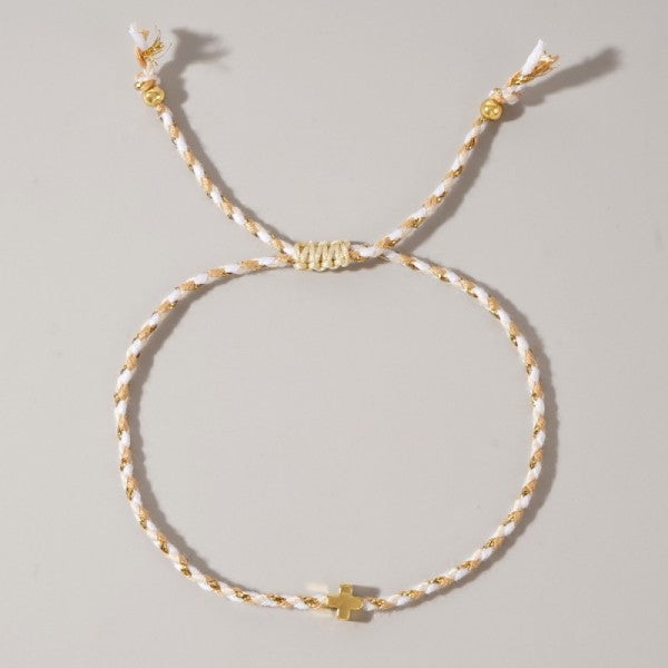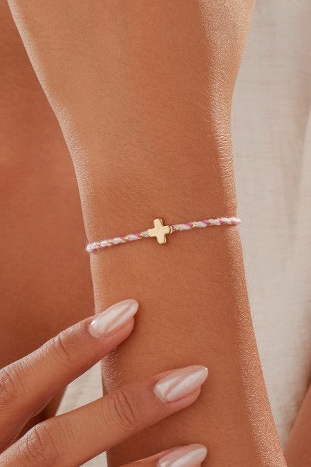 18k Stainless Steel Corded Cross Charm Bracelet