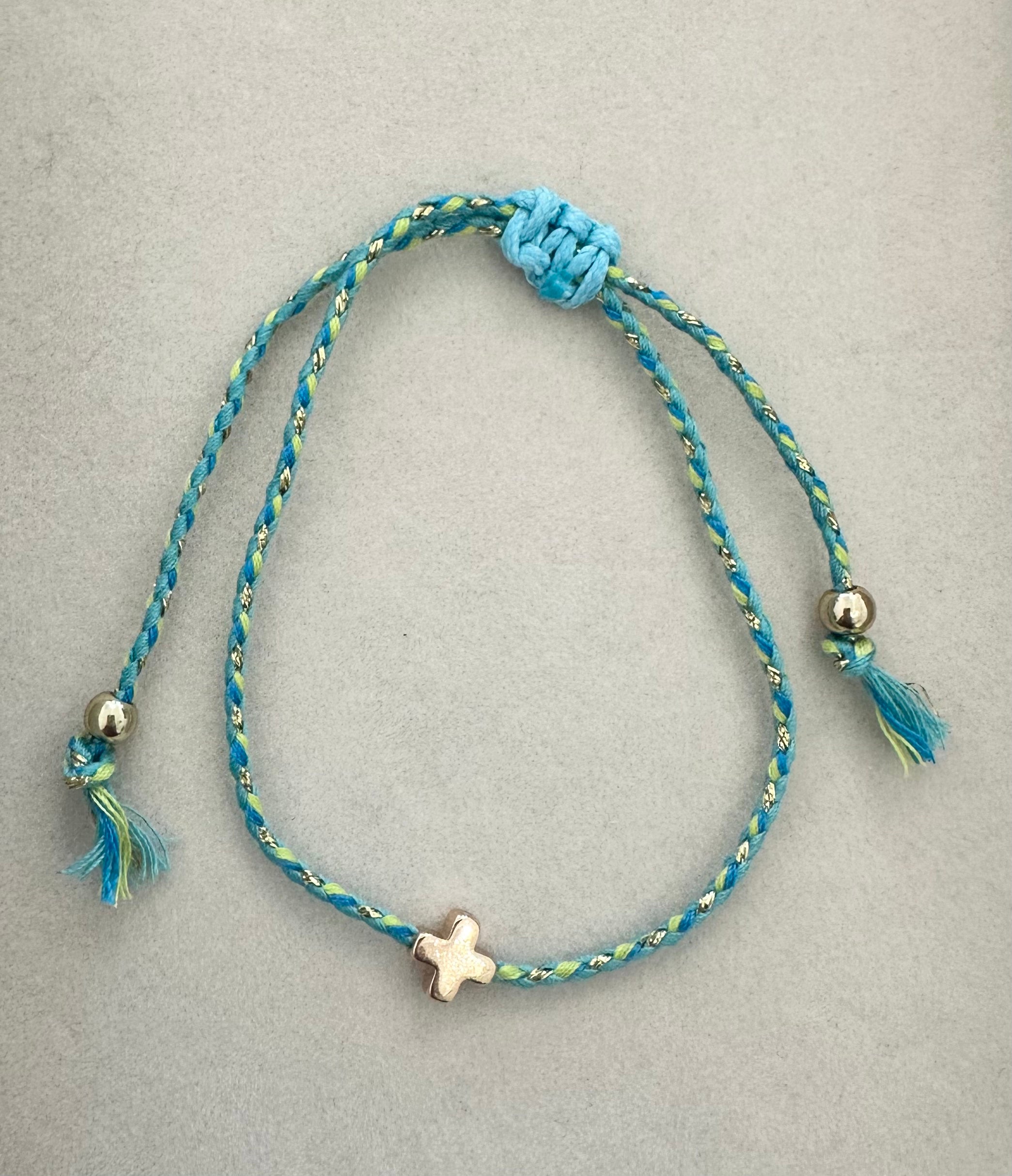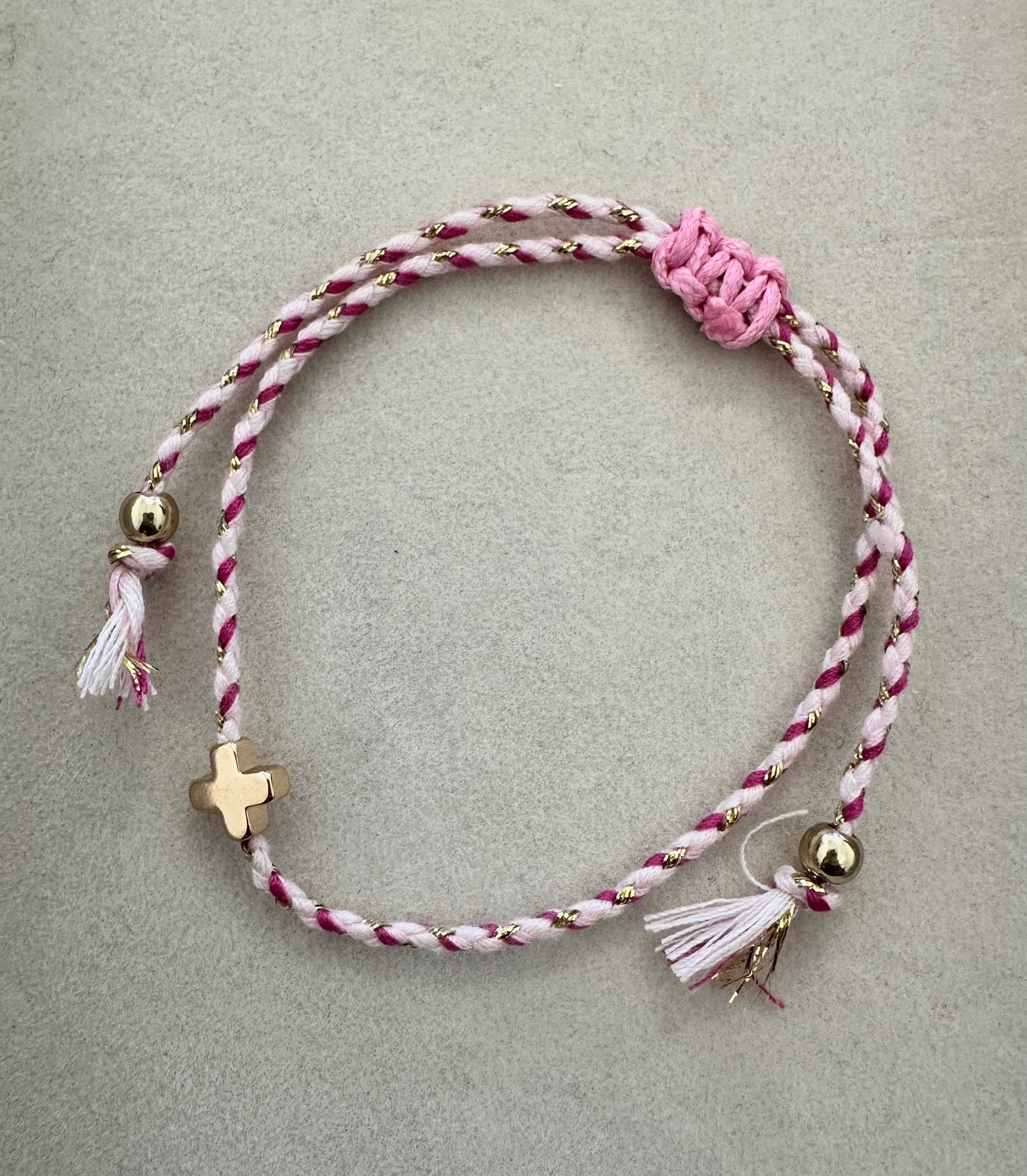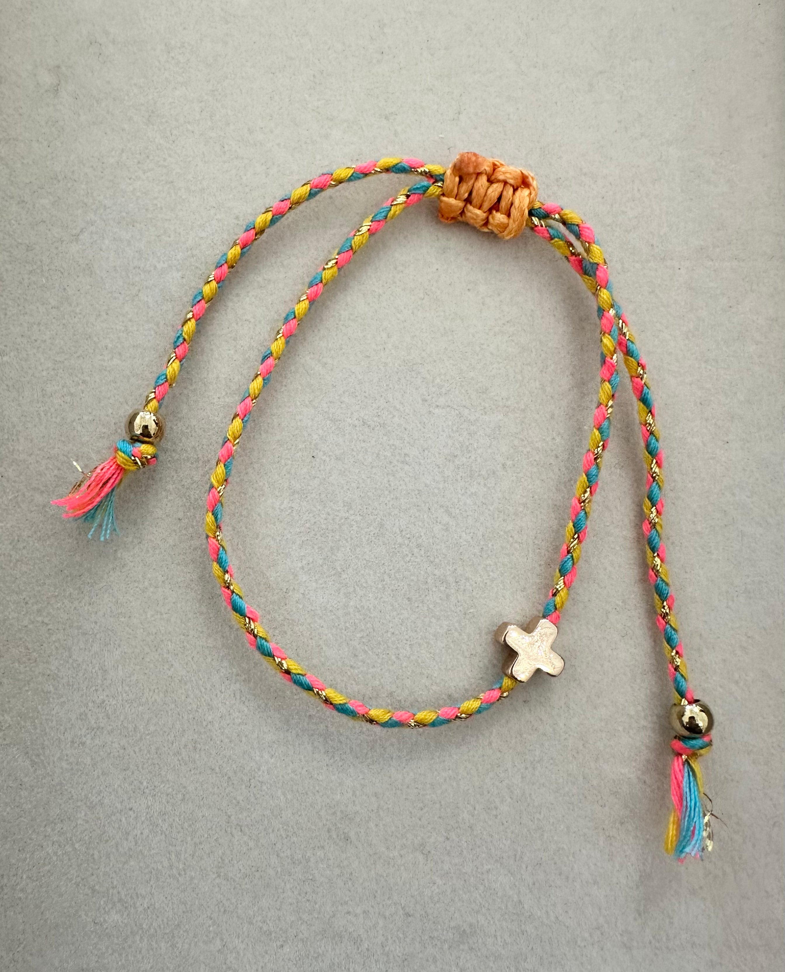 18k Stainless Steel Corded Cross Charm Bracelet