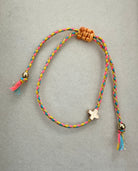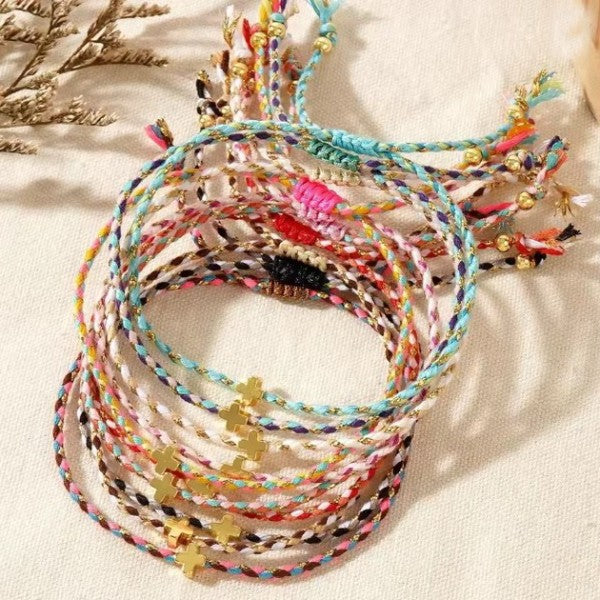 Elevate your style with the 18k Stainless Steel Corded Cross Charm Bracelet. Featuring a vibrant rope chain available in blue, multi, pink, or white, this bracelet is adorned with multiple charming accents. Crafted from hypoallergenic stainless steel, it ensures comfort for sensitive skin while being waterproof for everyday wear. Perfect for adding a colorful, meaningful touch to any outfit.