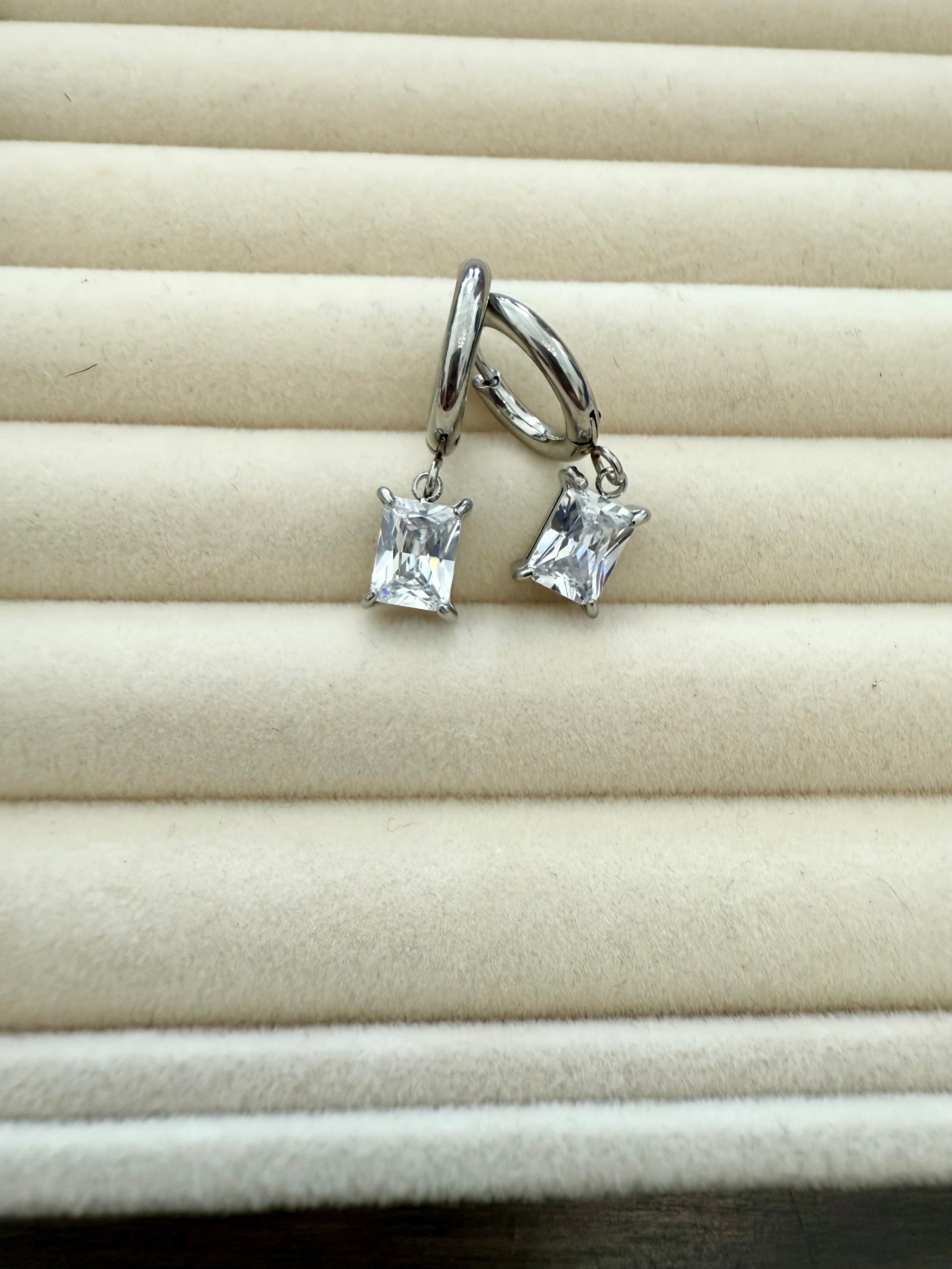 "Complete your stylish look with our Small Stainless Steel Hoop Earrings, adorned with a dazzling CZ dangle. Made with high-quality stainless steel, these earrings are both durable and fashionable. Elevate any outfit with these elegant and versatile earrings.”