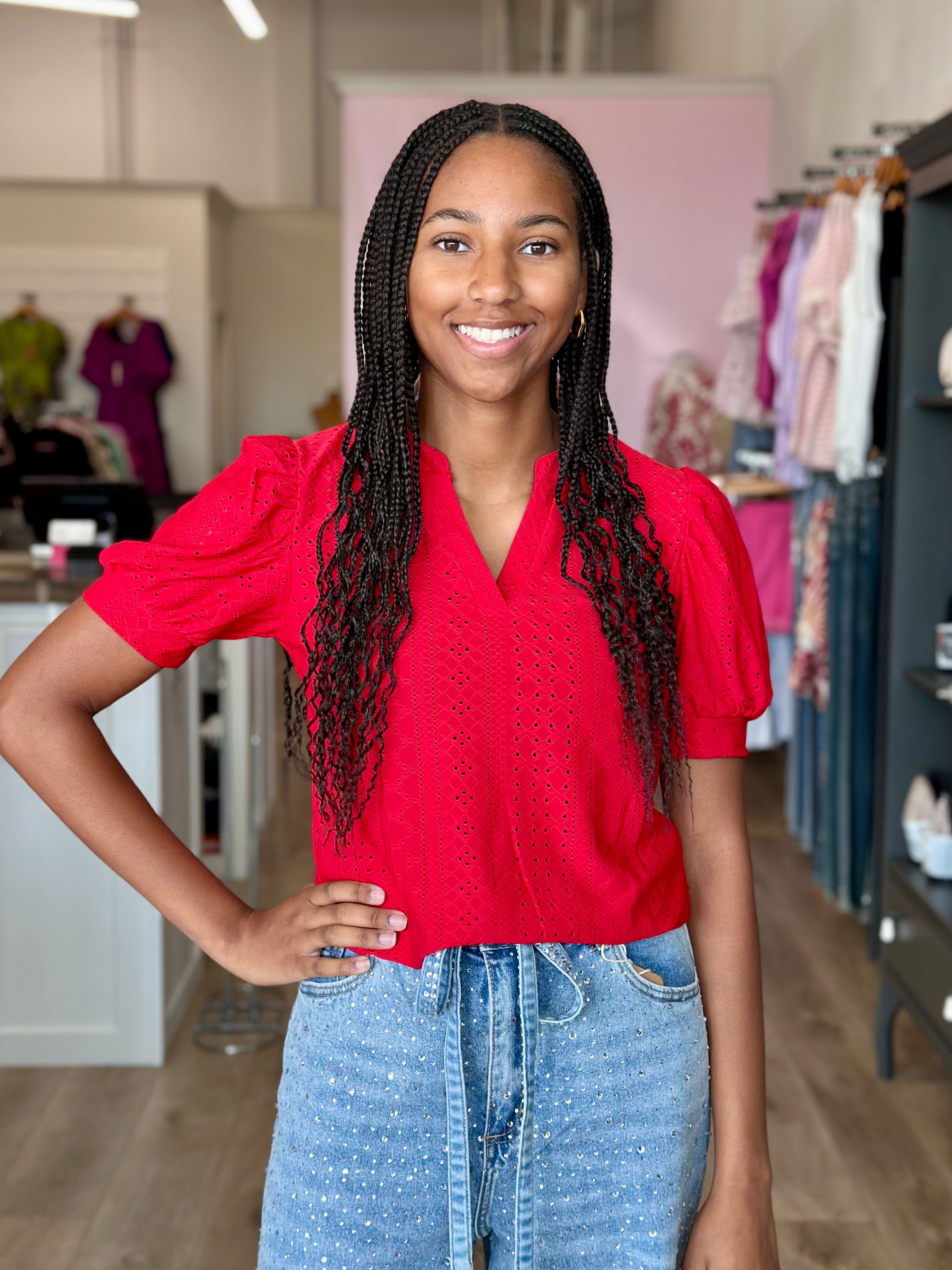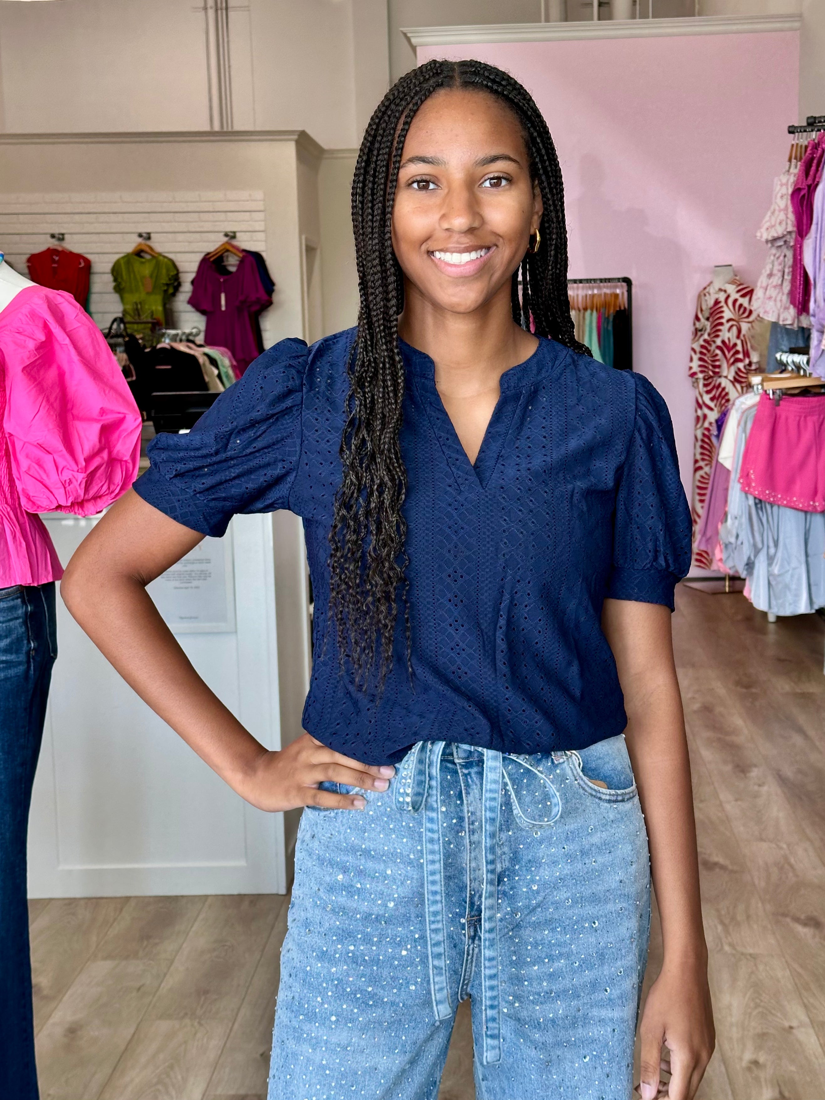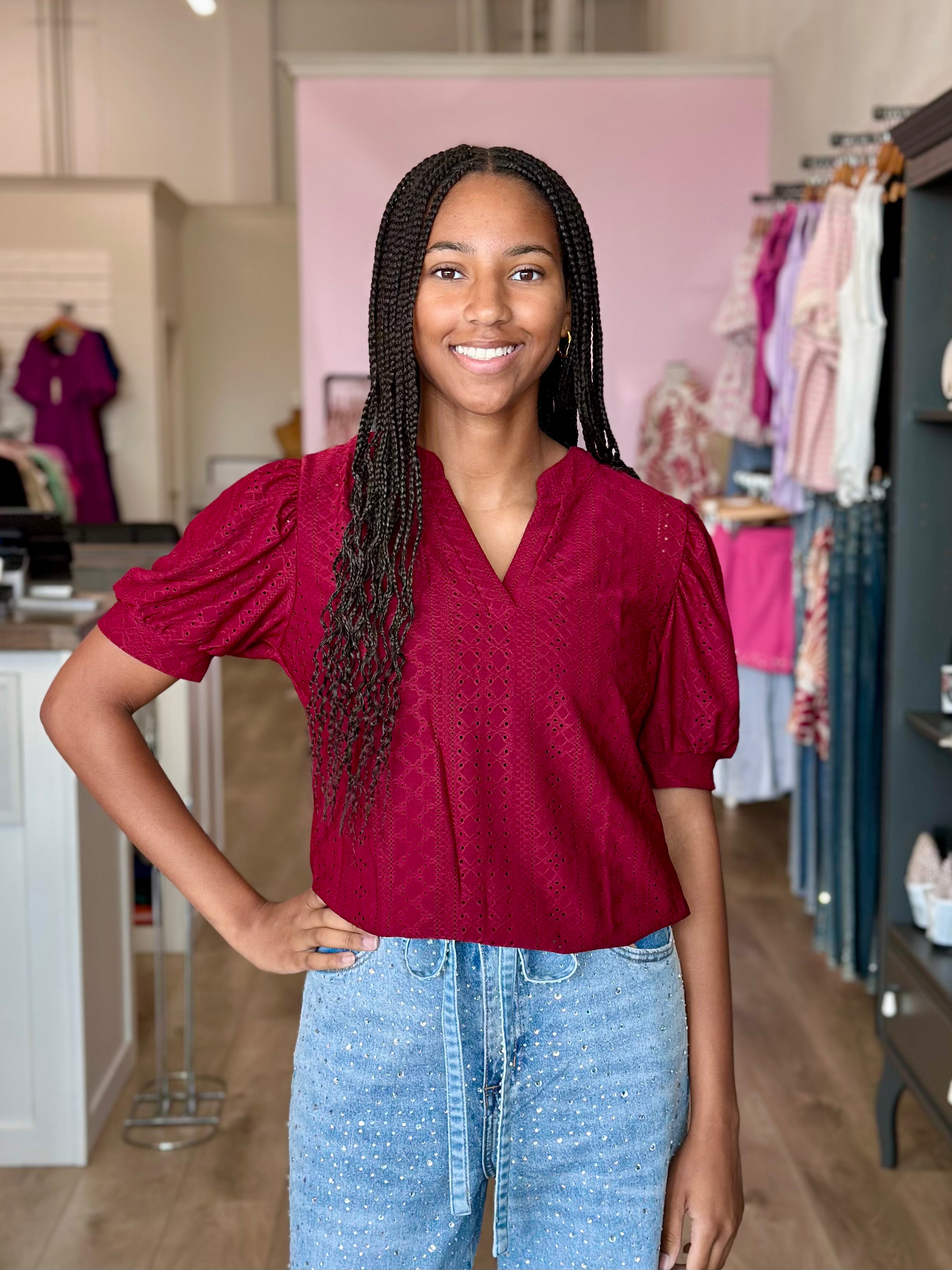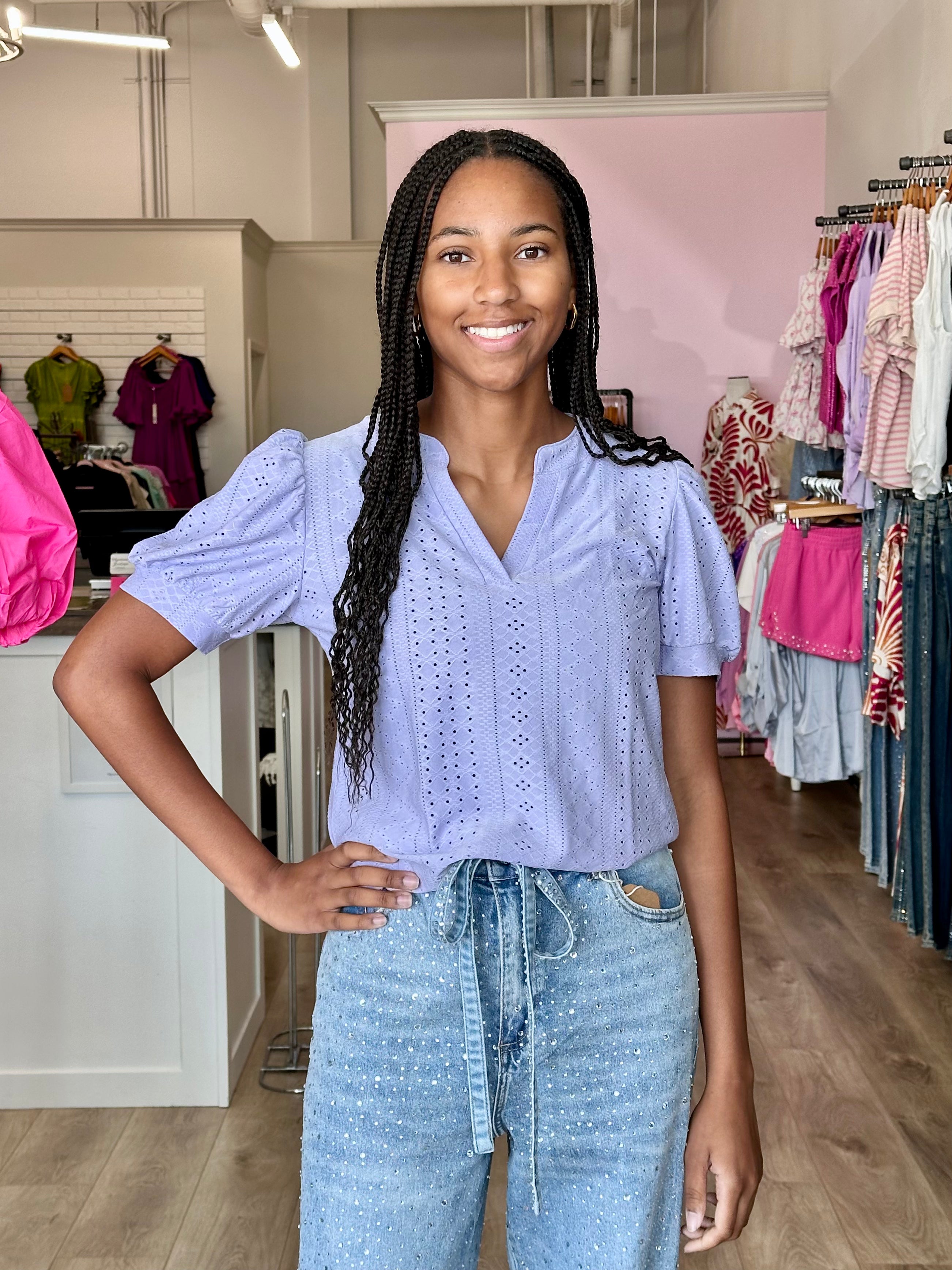 HOLLOW PUFF SLEEVE LOOSE TEE