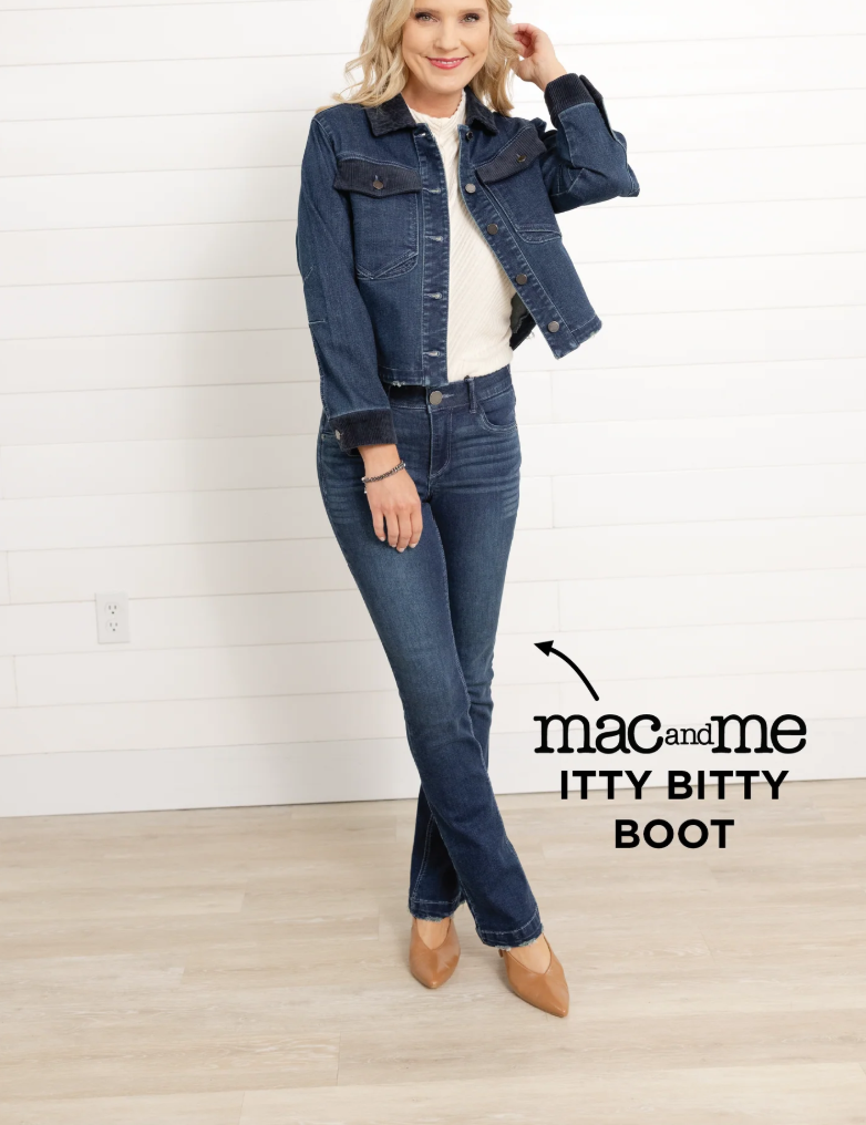 The Mac and Me Itty Bitty Bootcut Jeans are designed to give you a smooth, flattering fit while maintaining everyday comfort. With shaping technology and a classic bootcut silhouette, these jeans are a timeless boutique staple.