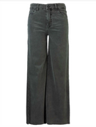 Elevate your wardrobe with the Meg High Rise Fab AB Wide Leg Raw Hem-Long in pewter green. Featuring a flattering high rise and wide-leg cut, these pants offer both comfort and style. The raw hem adds a modern, edgy touch, making them perfect for dressing up or down. Crafted to enhance your silhouette, they pair effortlessly with your favorite tops for a chic, confident look.