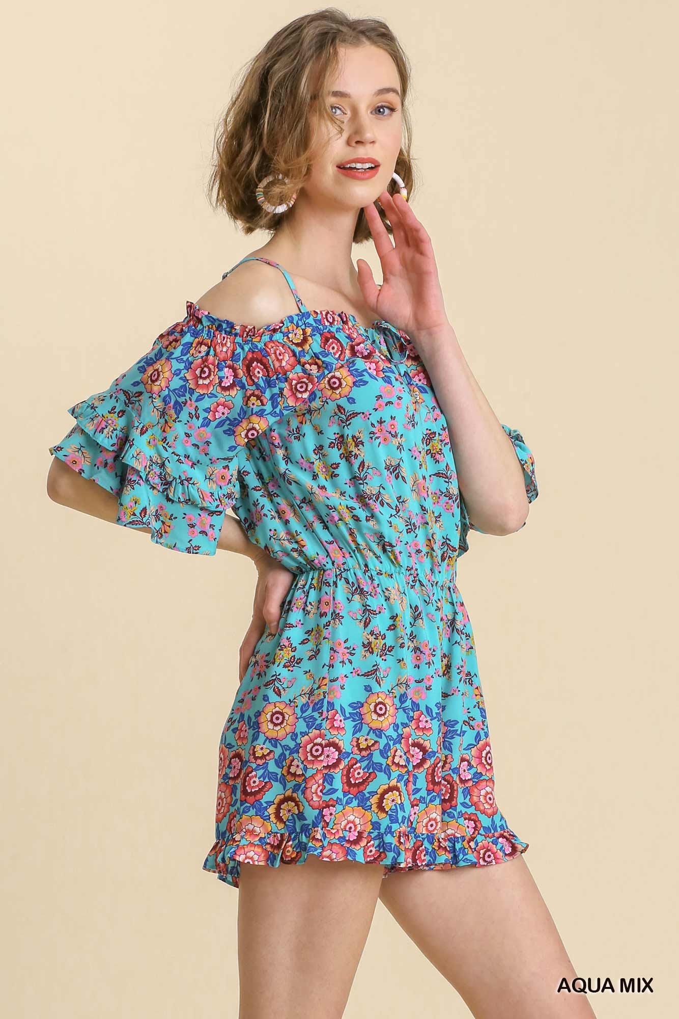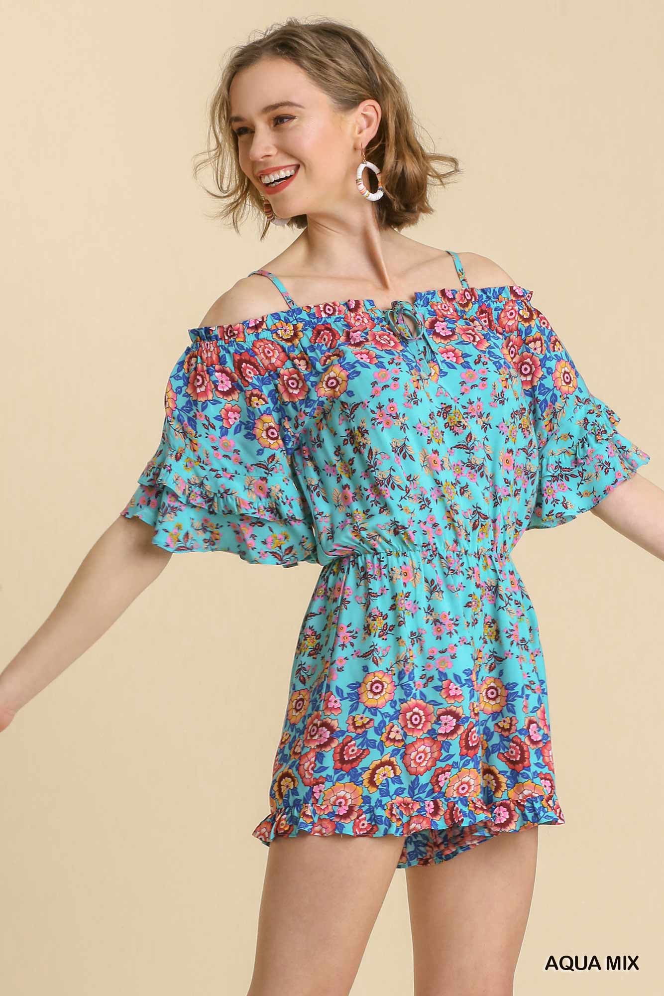 Feminine, flirty, and effortlessly chic—this Mixed Floral Border Print Romper is your go-to one-and-done outfit for warm days and special moments. Designed with a romantic off-the-shoulder neckline, soft ruffle sleeves, and delicate spaghetti straps, this romper blends comfort with standout style. The eye-catching mixed floral border print adds a curated, boutique feel that elevates this piece beyond everyday wear.