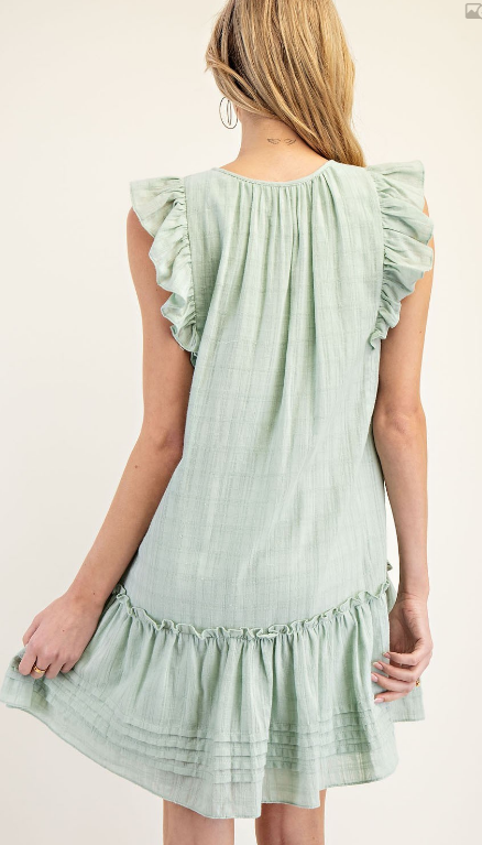 Ruffle Drawstring V-Neck Mini Dress - Pistachio