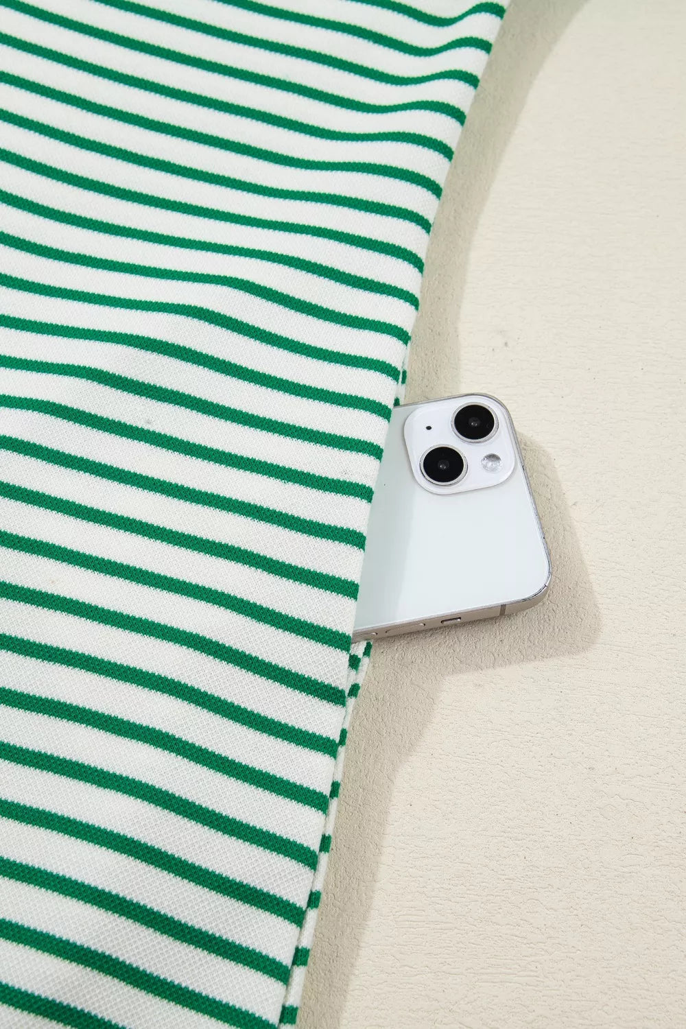 Stripe Quarter Zip Polo Collar T Shirt Dress with Pockets