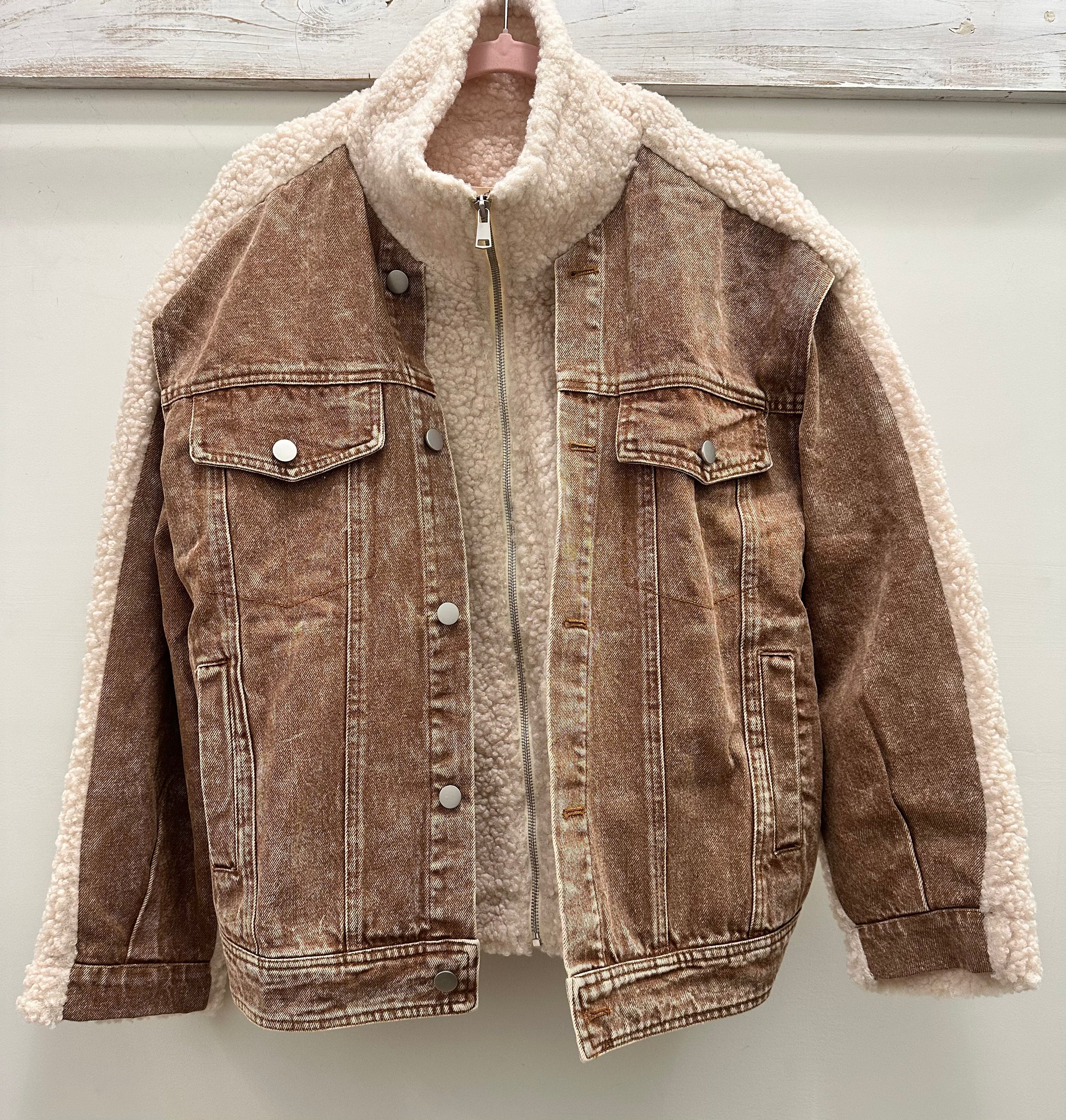 Explore new horizons with our DENIM MIXED SHERPA JACKET! Featuring a unique blend of denim and cozy sherpa, this jacket will keep you warm and stylish on your next adventure. The perfect combination of fashion and functionality, this jacket is a must-have for any outdoor enthusiast.