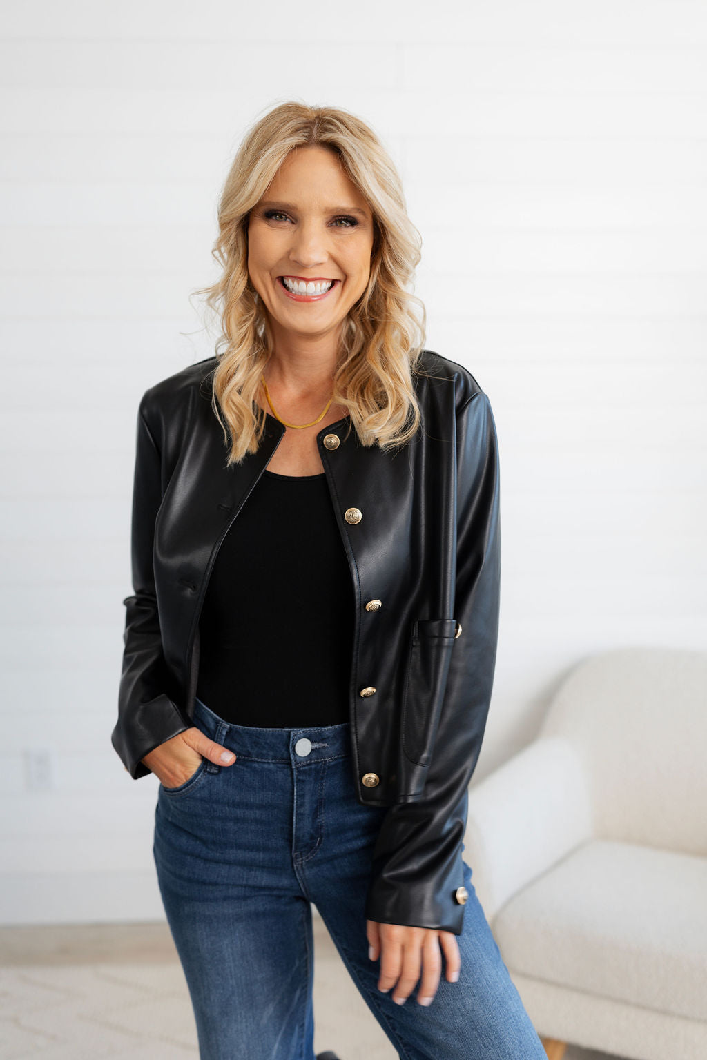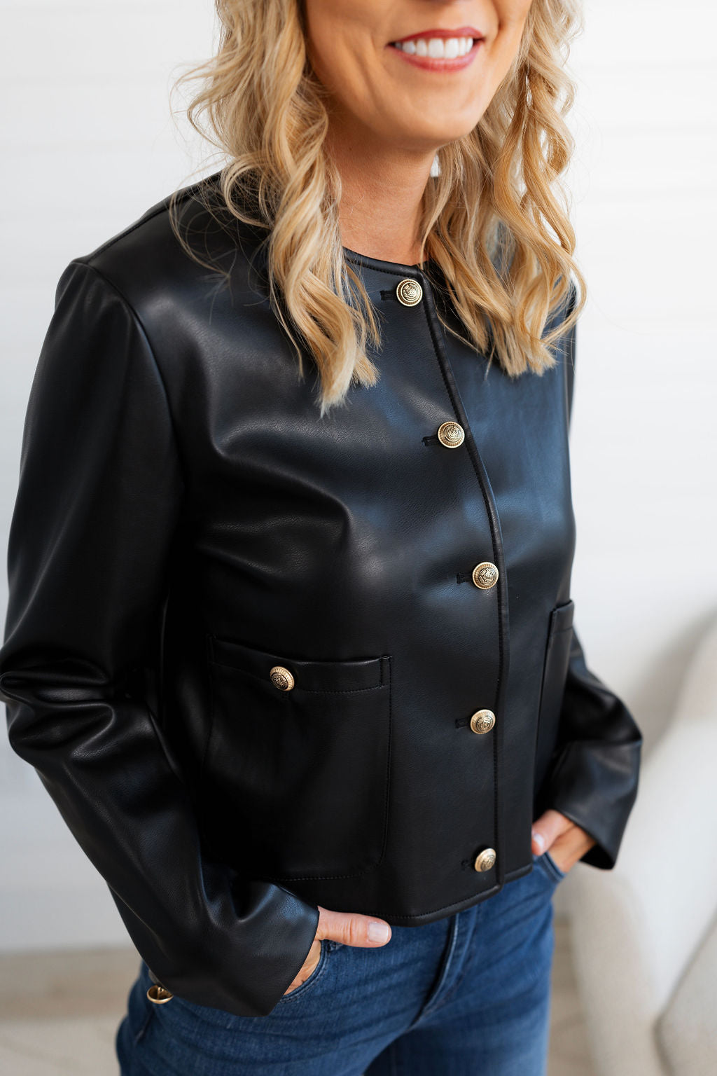 Discover the luxurious feel of our FAUX LEATHER JACKET! Made from top-quality faux leather, this jacket boasts a sleek and stylish design, perfect for any occasion. Stay warm and fashionable with this must-have piece in your wardrobe. Elevate your style and make a statement with our FAUX LEATHER JACKET now!