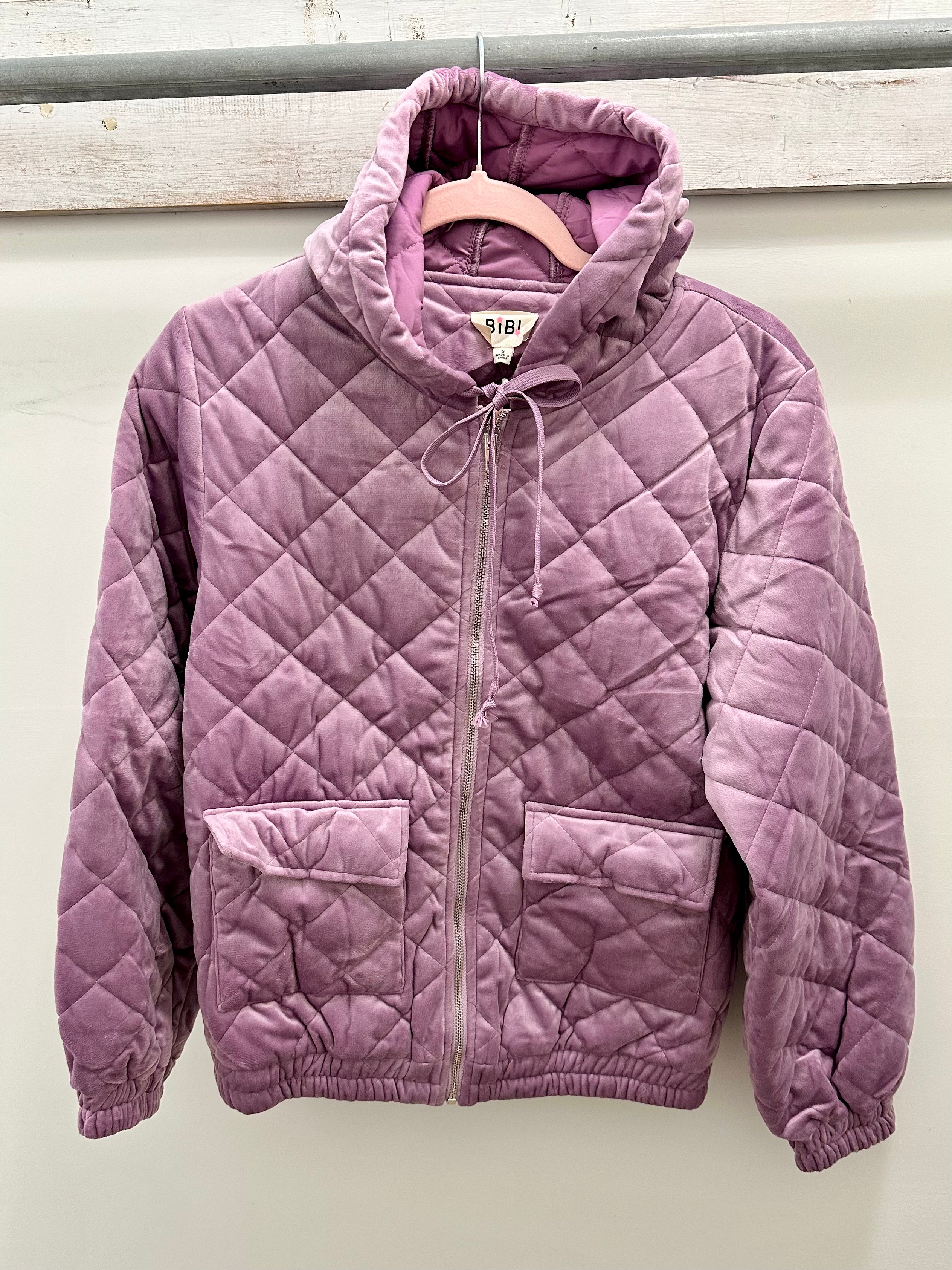 Elevate your comfort and style with this Quilted Velvet Hood Jacket in a soothing lavender shade. Crafted from plush velvet, it offers warmth without bulk, while the quilted design adds a chic textured look. The convenient pocket keeps essentials close, perfect for on-the-go days. Soft, cozy, and effortlessly stylish, this jacket is a must-have layering piece for cool weather.