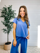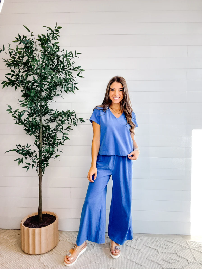 Mac and Me Boxy V Neck Tee – Bright Blue