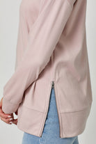 Wrap yourself in cozy comfort with our Brushed Knit Turtleneck Sweatshirt in a beautiful dusty rose color. This sweatshirt is made with a soft brushed knit fabric that will keep you warm and comfortable all day long. Perfect for a casual day out or a relaxing evening at home!