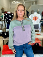 The Miranda Sweatshirt offers a cozy, soft feel with its ribbed poly rayon fabric, ensuring all-day comfort. Its stylish round neckline and classic solid colorblock design make it easy to pair with any outfit, while the three functional buttons add a subtle, practical touch. Perfect for layering or wearing solo, this versatile sweatshirt blends comfort and style effortlessly.