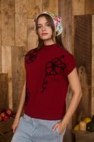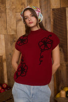 "Add a touch of sophistication with our MOCK NECK CONTRAST FLORAL TRIM KNIT SWEATER. Available in burgundy and cream, this sweater exudes elegance and charm with its unique design and flattering mock neckline. Stay stylish and cozy in any occasion!"