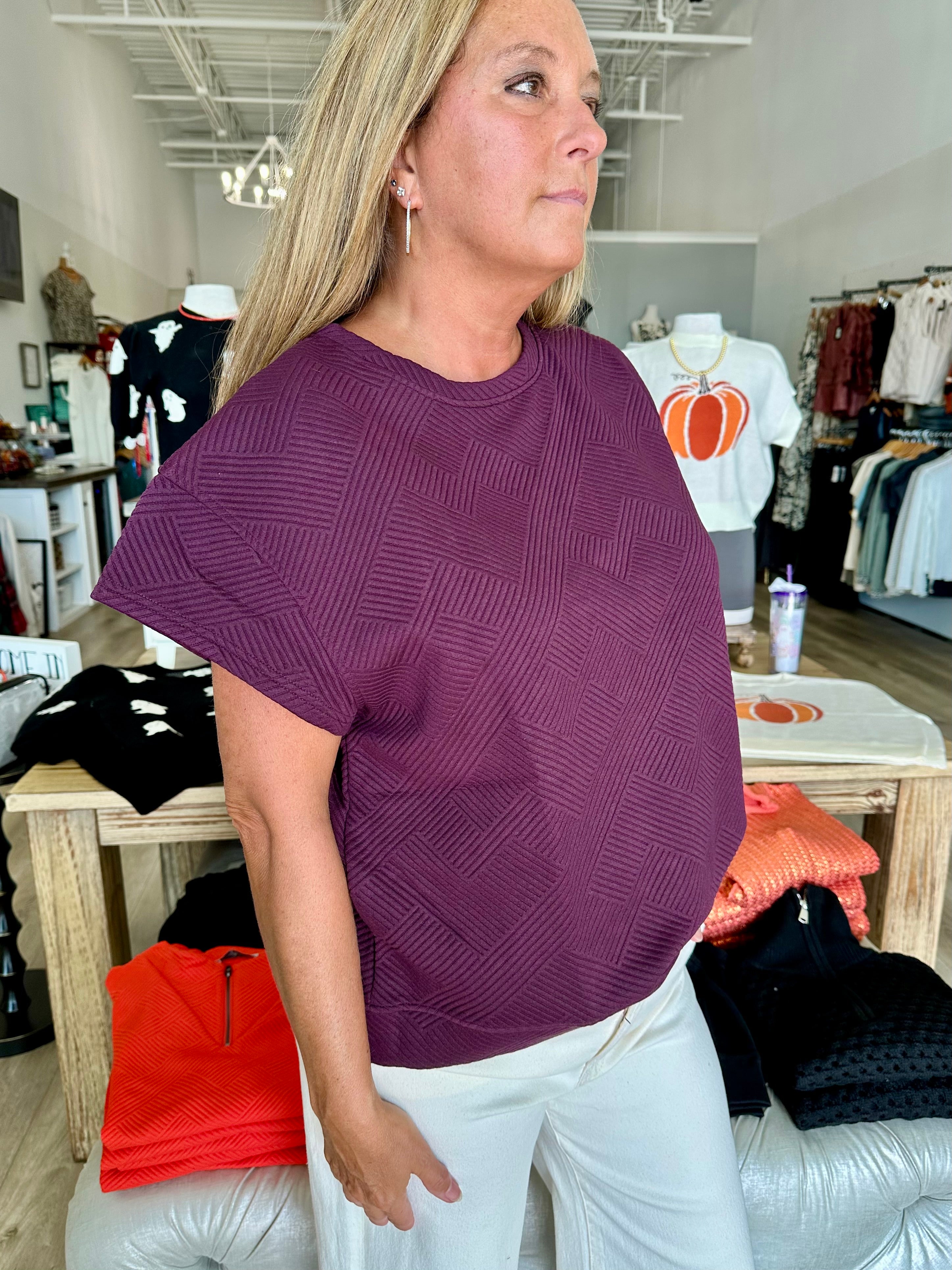 Experience comfort and style with our Textured Short Sleeve Sweatshirts Lounge Wear Top. Available in rich Burgundy and warm Rust, this top combines a unique textured fabric with a relaxed fit, perfect for lounging or casual outings. Lightweight and breathable, it keeps you comfortable all day while adding a touch of effortless chic to your wardrobe. Choose your favorite color and elevate your everyday comfort.