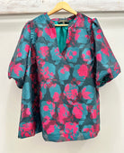 KAELANI JACQUARD TAVIA SPLIT NECK TOP CURVE
