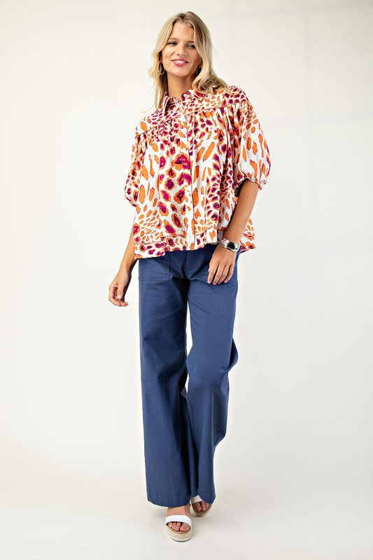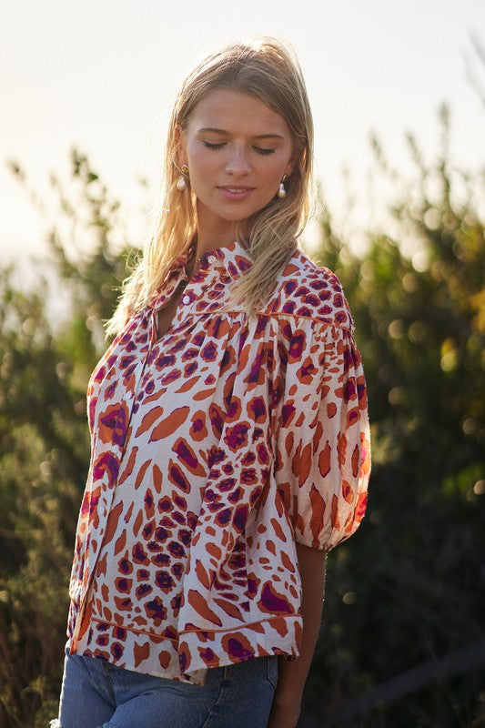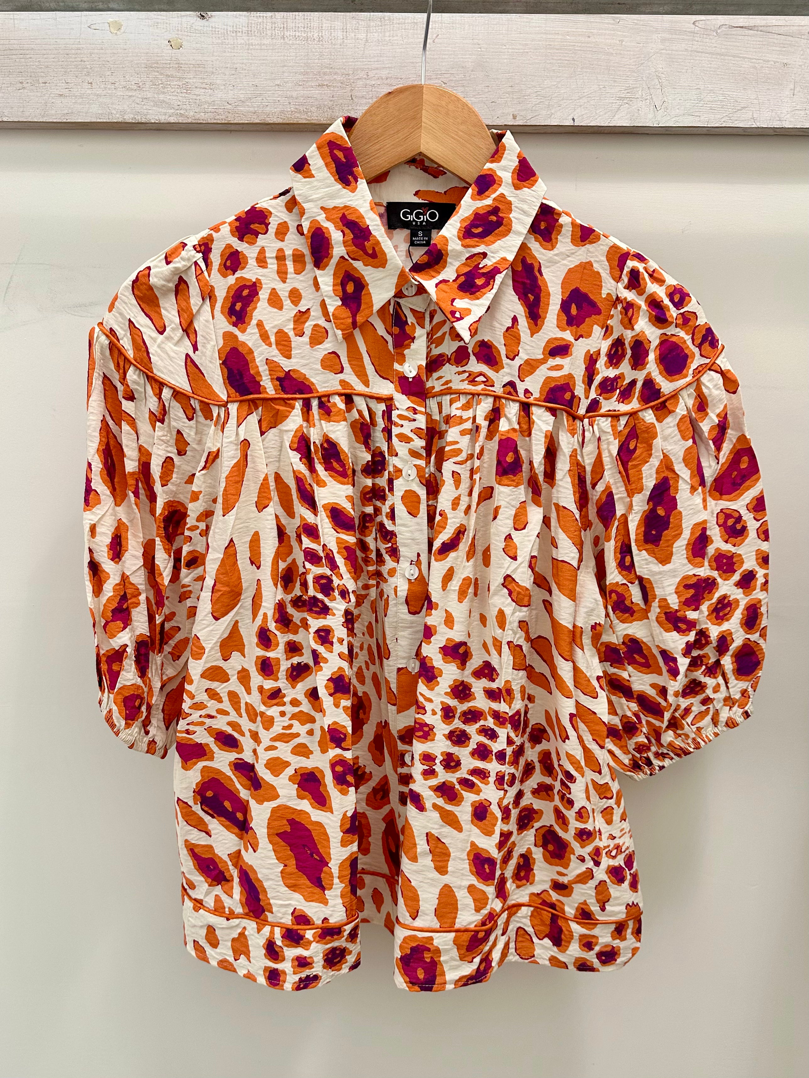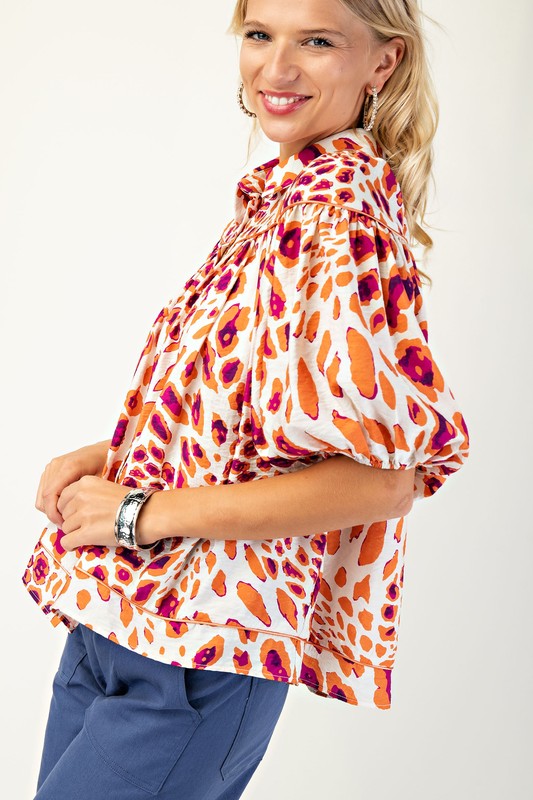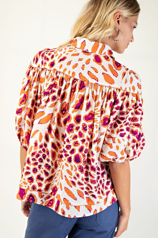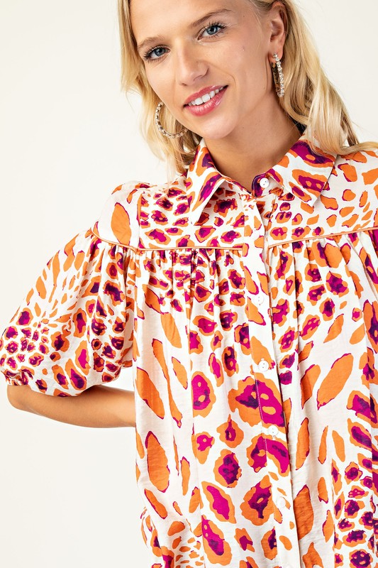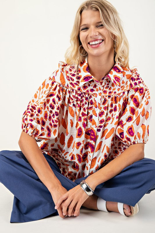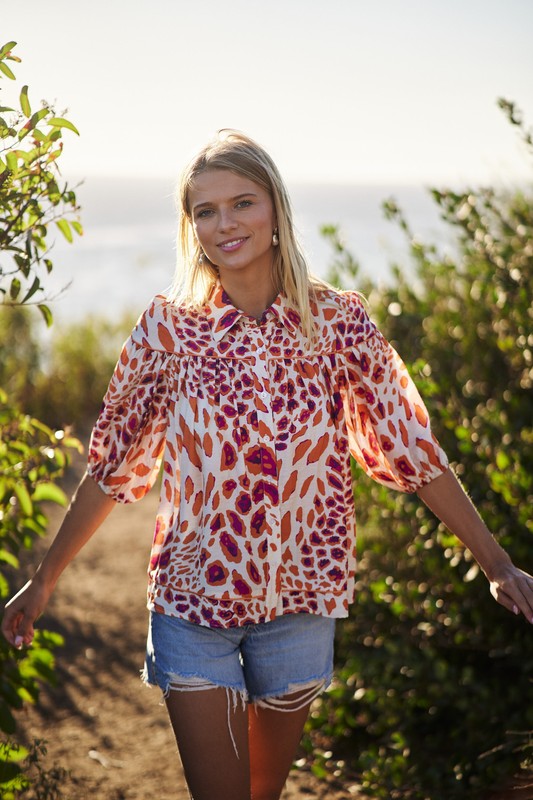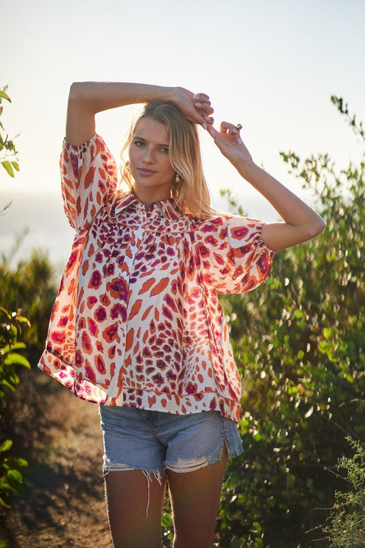 Elevate your wardrobe with this Leopard Print Button Down Blouse, available in two striking colors: vibrant Orange and subtle Sage. Its chic pattern and classic button-down design make it perfect for adding a bold yet sophisticated touch to any outfit. Whether dressing up for work or dressing down for weekend plans, this blouse combines style and versatility effortlessly. Choose your favorite shade and stand out with confidence.