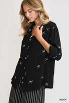 Whether you’re dressing it up for a polished outing or styling it with denim and boots for a chic rodeo-inspired look, this shirt delivers effortless confidence every time.