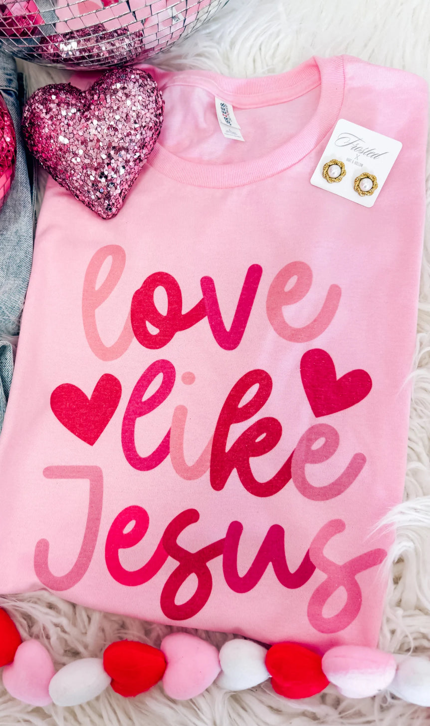 "Spread love like Jesus with our Valentine's themed tee! Show your passion for love and faith with every wear. Perfect for celebrating with your significant other or as a gift for someone special. Spread light and positivity with this inspiring tee."