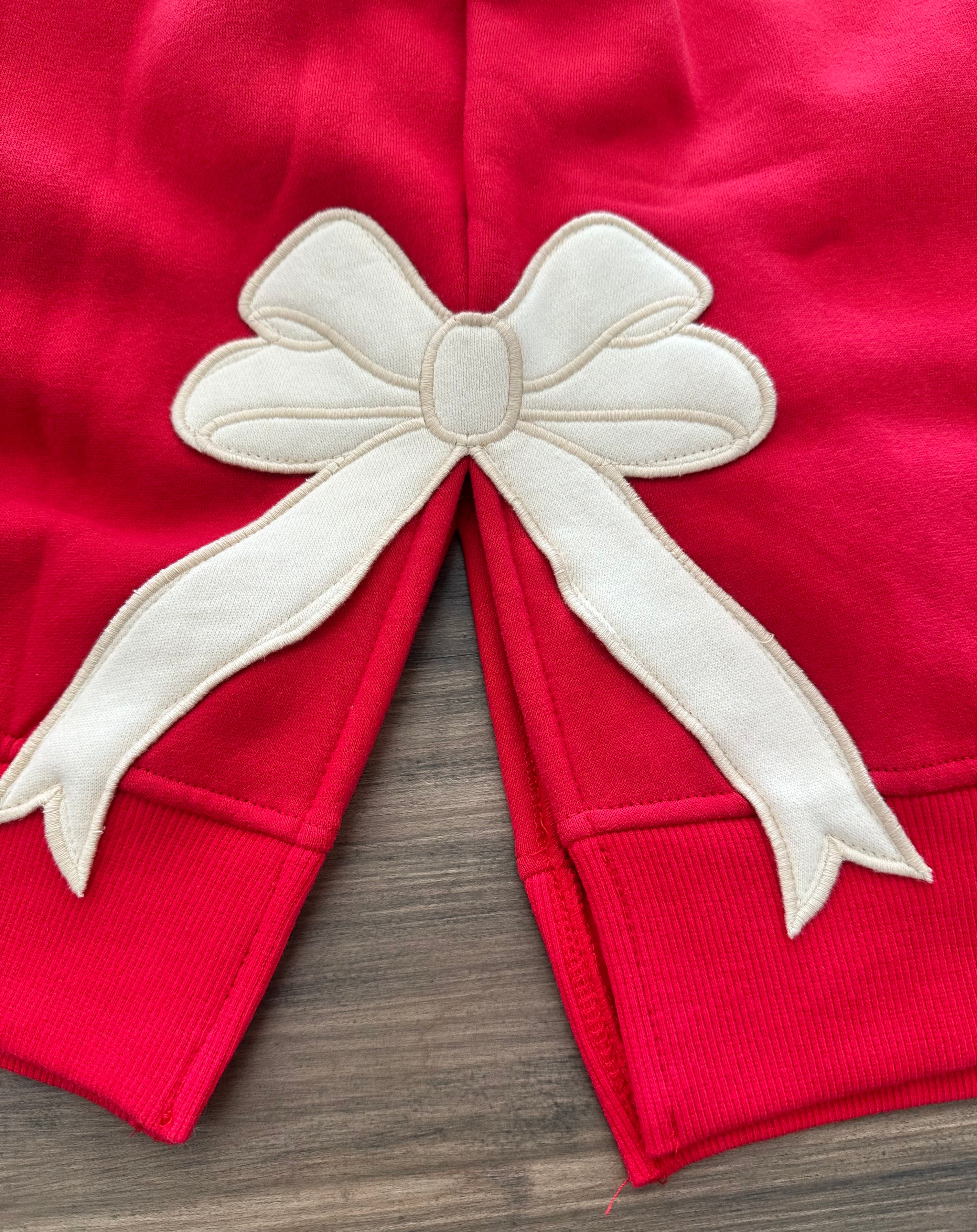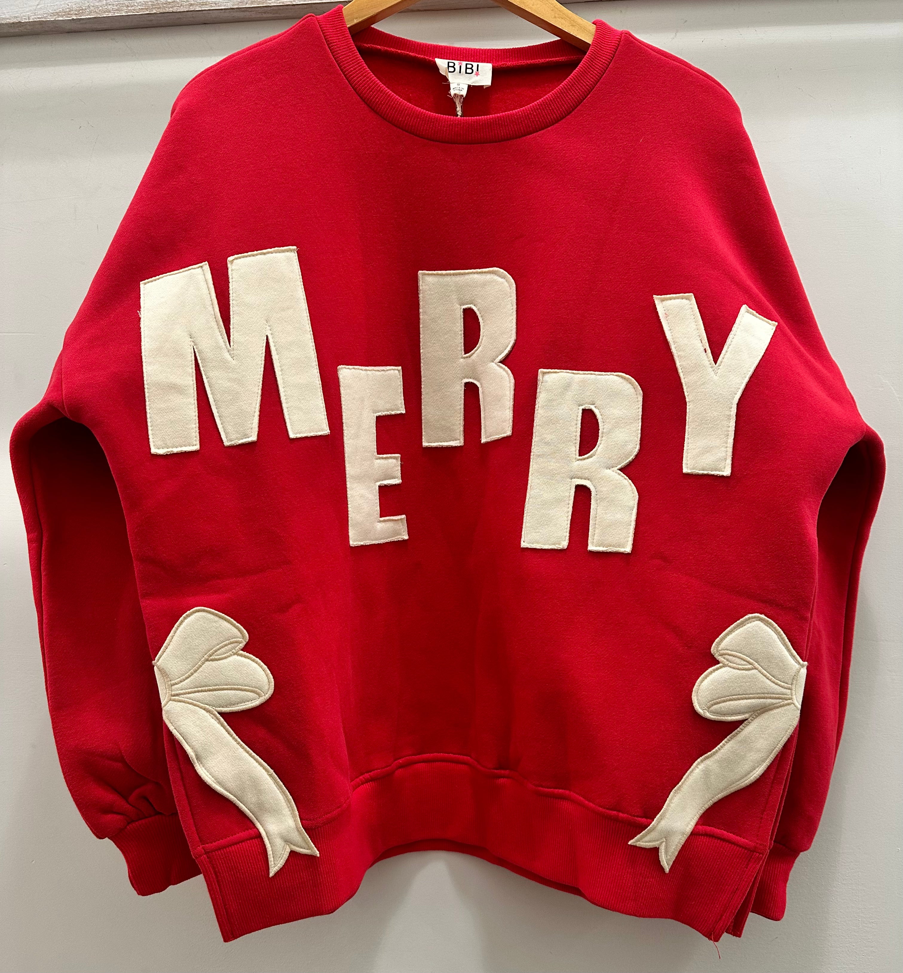 Merry and Side Bow Patches Christmas Fleece Sweathirt