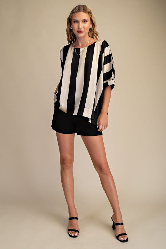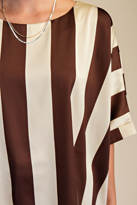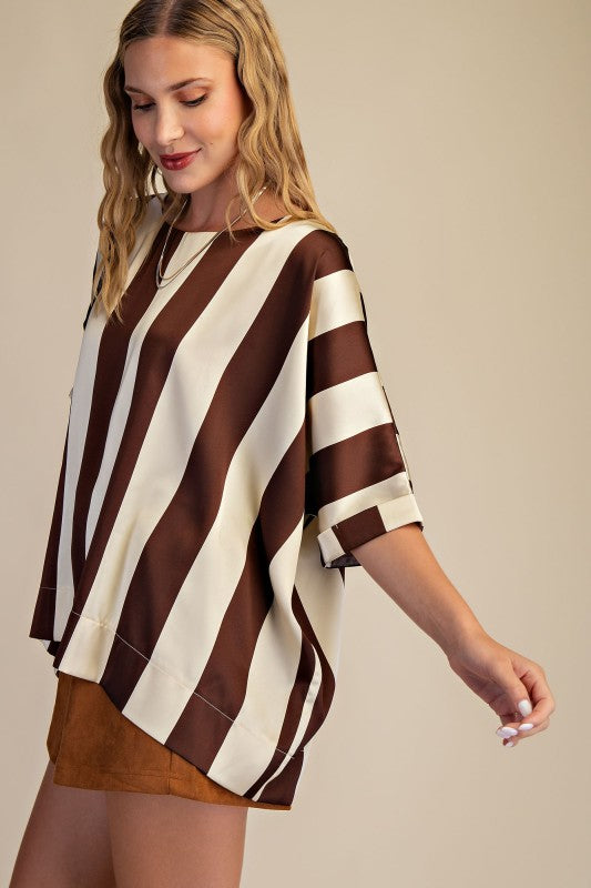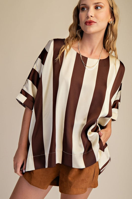 Experience effortless style with our Round Neck Oversized Top, available in chic black and white stripes or warm brown and white stripes. Its relaxed fit ensures all-day comfort while adding a modern, laid-back vibe to any outfit. Perfect for layering or wearing on its own, this versatile top enhances your wardrobe with timeless patterns and a flattering silhouette. Elevate your casual look with ease and confidence.