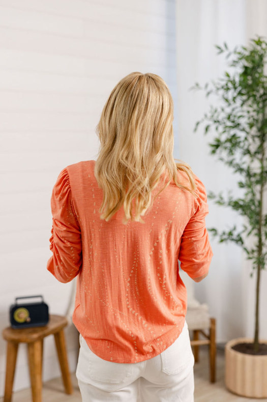 This is the knit top you reach for on repeat. The ruched puff sleeves, flattering neckline, and abstract print create just enough interest to feel styled, while the soft stretch fabric keeps it comfortable all day long. Easy, elevated, and confidently versatile.