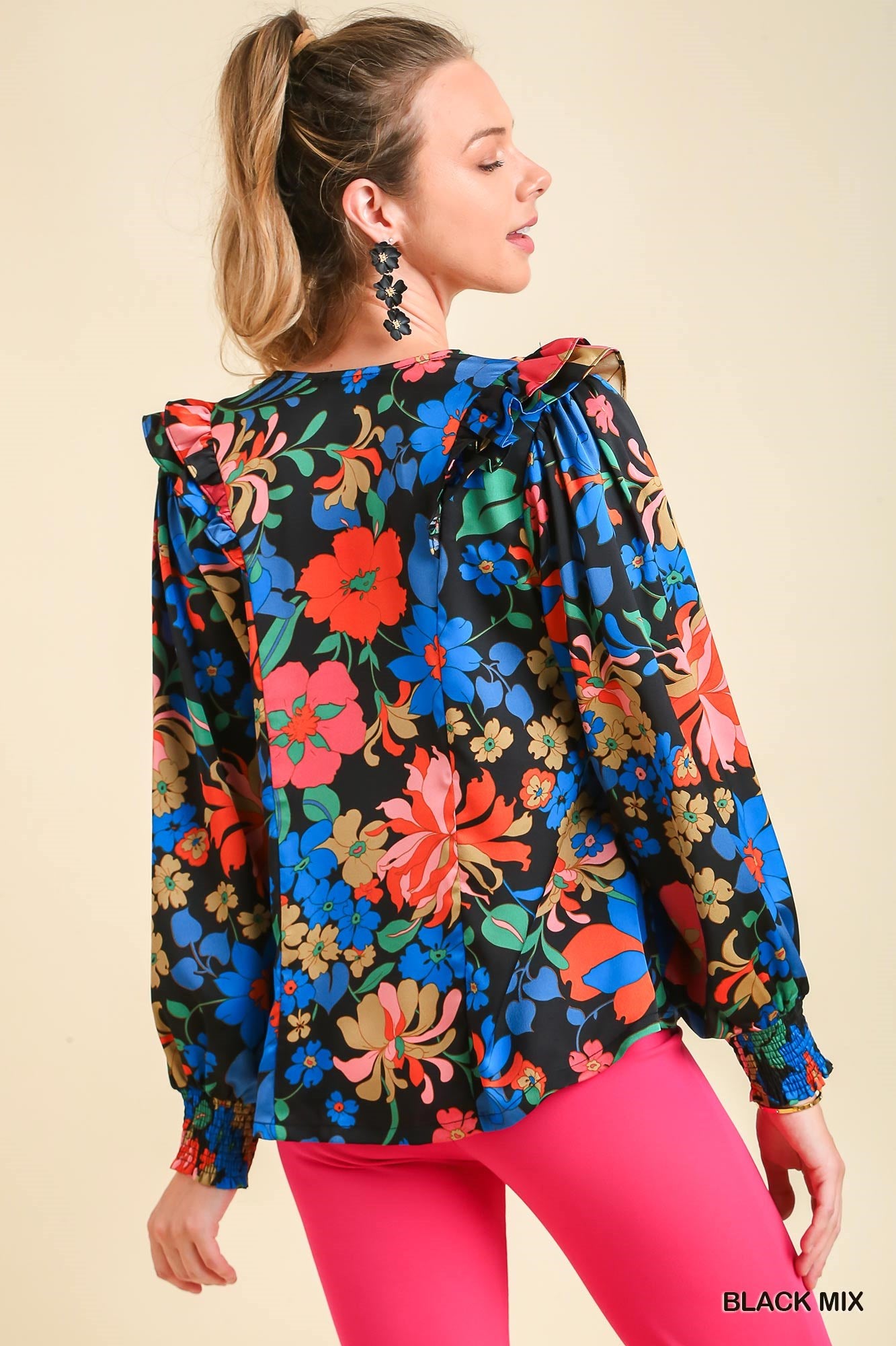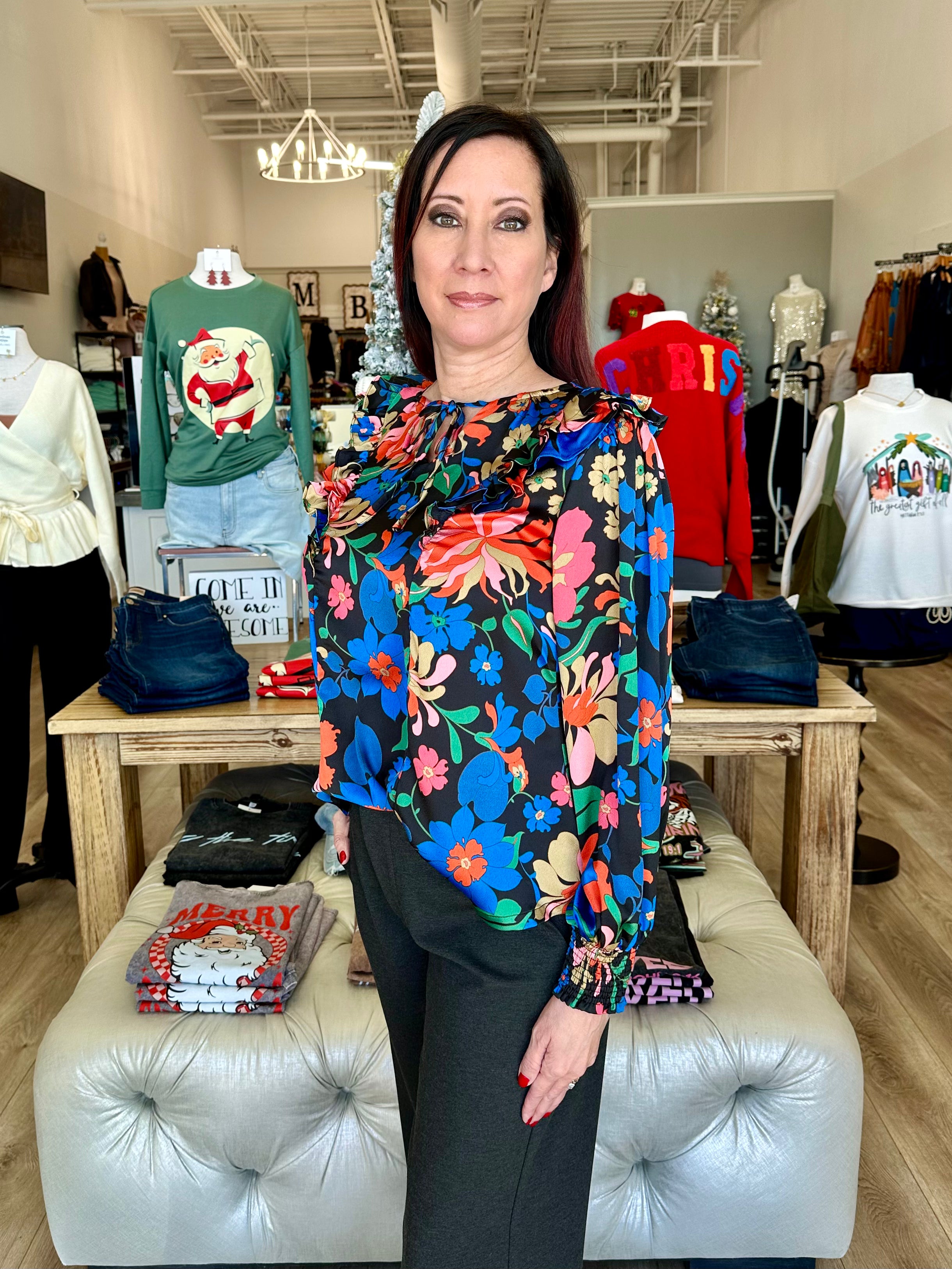 This satin floral print top is here to make every outfit feel intentional (even if you got dressed in five minutes—no judgment, we’ve all been there). Crafted from a silky-smooth satin with a vibrant floral print, this piece brings bold color and effortless polish together in one standout silhouette.