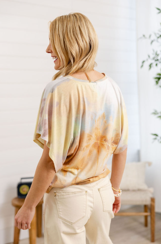 Palm Tree Placement Print Dolman Top – Honey Multi