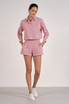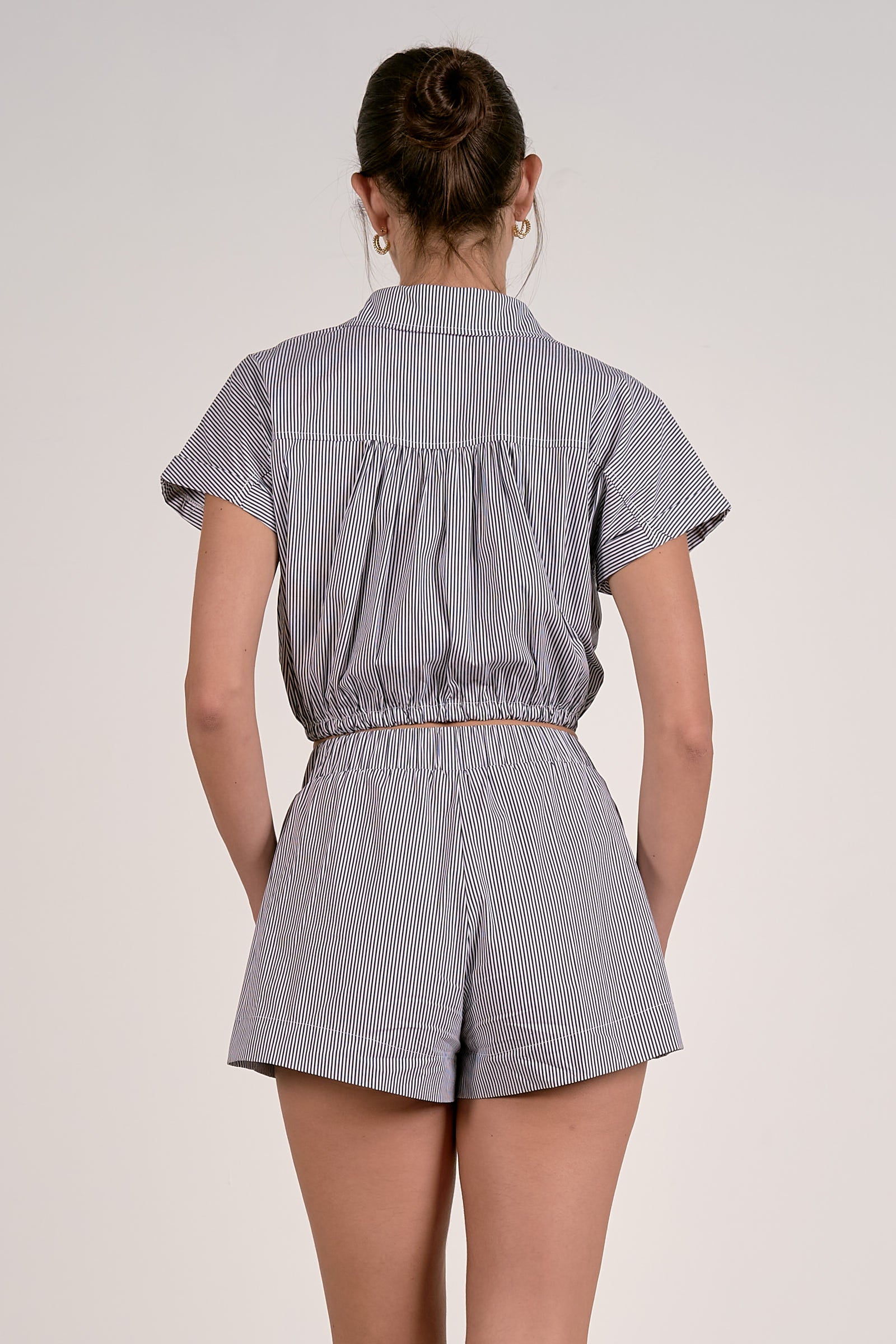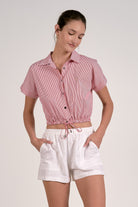 Classy and undeniably chic, this striped button down top brings a fresh, modern feel to a timeless silhouette. Designed with a crisp collared neckline, short sleeves, and a flattering cropped length, it creates a polished look that still feels relaxed and effortless. The classic stripe pattern adds visual interest while the tailored shape keeps the overall style refined and easy to wear.