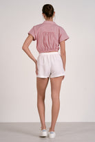 Short Sleeve Striped Button Down Top