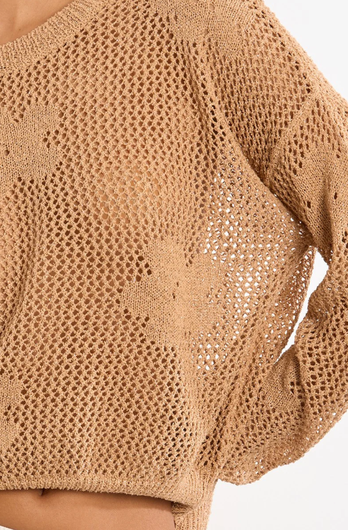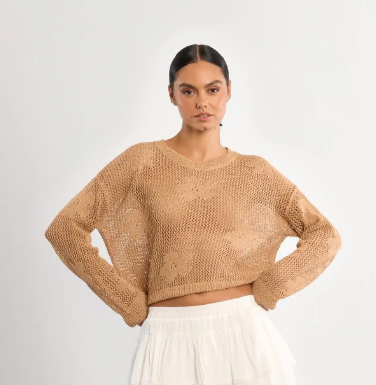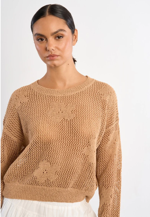 • Delicate floral knit pattern design• Lightweight semi-sheer open knit• Classic round neckline sweater• Comfortable long sleeve silhouette• Slightly cropped modern fit• Soft, breathable feel• Perfect layering piece• Easy day-to-night styling• Boutique favorite feminine essential