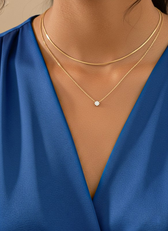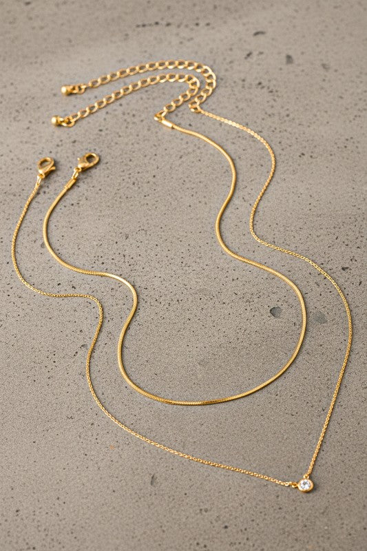Add a touch of elegance and sparkle to any outfit with this 2 Neck Set featuring a sleek Snake Chain and a stunning Round CZ Bead. Perfect for adding some glamour to your everyday look or dressing up for a special occasion. Enhance your style and make a statement with this beautiful set!