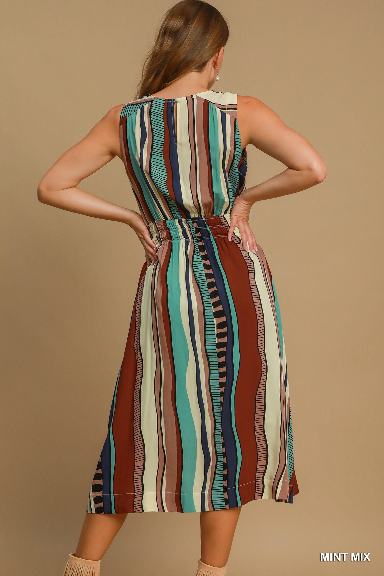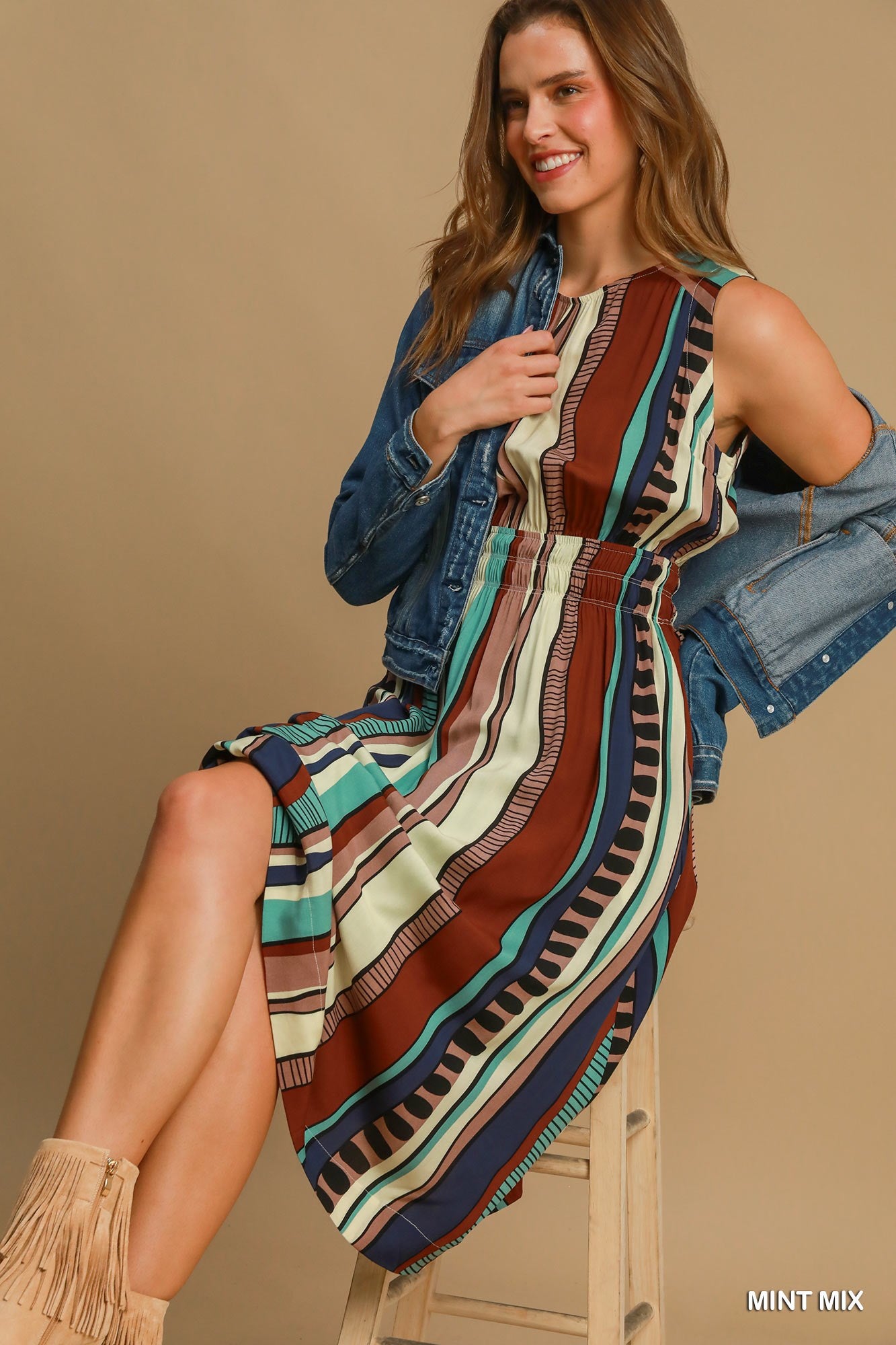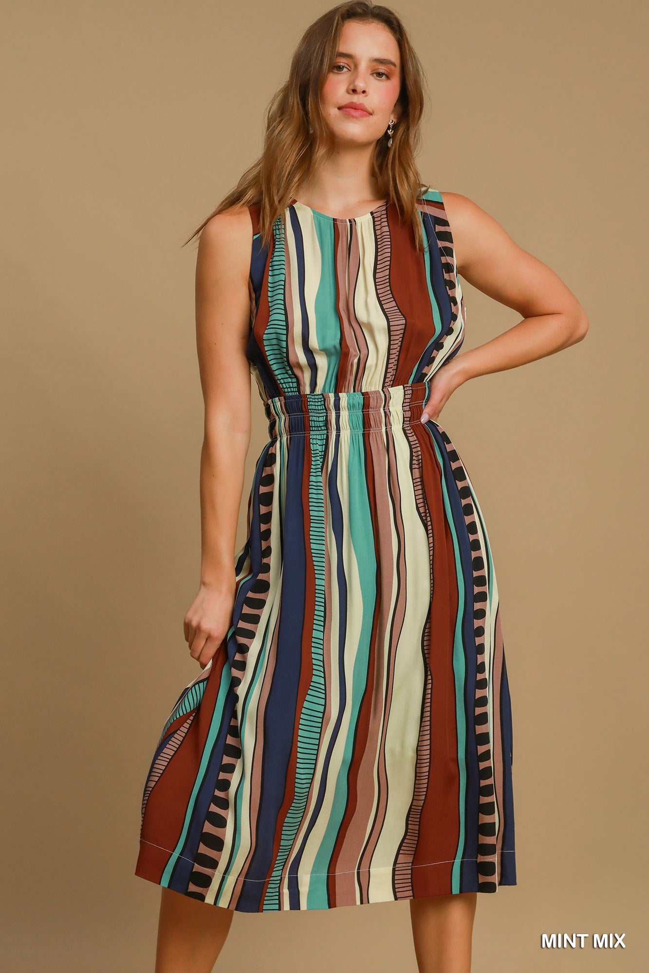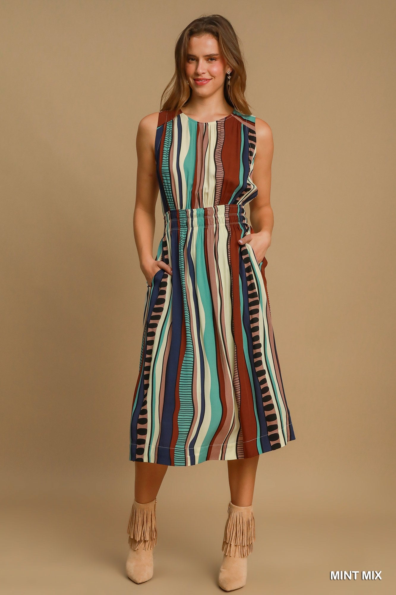 Elevate your everyday wardrobe with this striking Abstract Print Midi Dress in Mint Mix. The sleeveless silhouette keeps things breezy and versatile, while delicate smocking at the waist creates a flattering, defined shape. Practical pockets add functionality without compromising style—perfect for effortless transitions from day to evening. The eye-catching abstract print brings visual interest to any occasion, making this piece a go-to choice for those who refuse to compromise on comfort or sophistication.