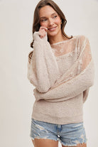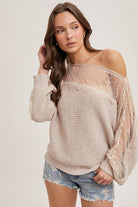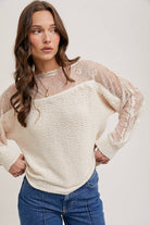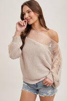BOAT NECK LACE Indulge in luxury with our Boat Neck Lace Trimmed Knit Sweater Pullover. Made from premium knit fabric, this pullover features a sophisticated boat neck and delicate lace trim for a touch of elegance. Perfect for any occasion, this pullover will keep you cozy and stylish all day long!TRIMMED KNIT SWEATER PULLOVER