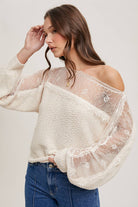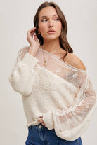 BOAT NECK LACE TRIMMED KNIT SWEATER PULLOVER
