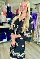 This stunning Boho Paisley Motif Embroidered Drop Waist Mini Dress in black is a must-have for any fashion-forward individual! The intricate embroidery and drop waist design add a unique touch to the classic paisley motif, making it perfect for any occasion. Stay stylish and chic with this dress!