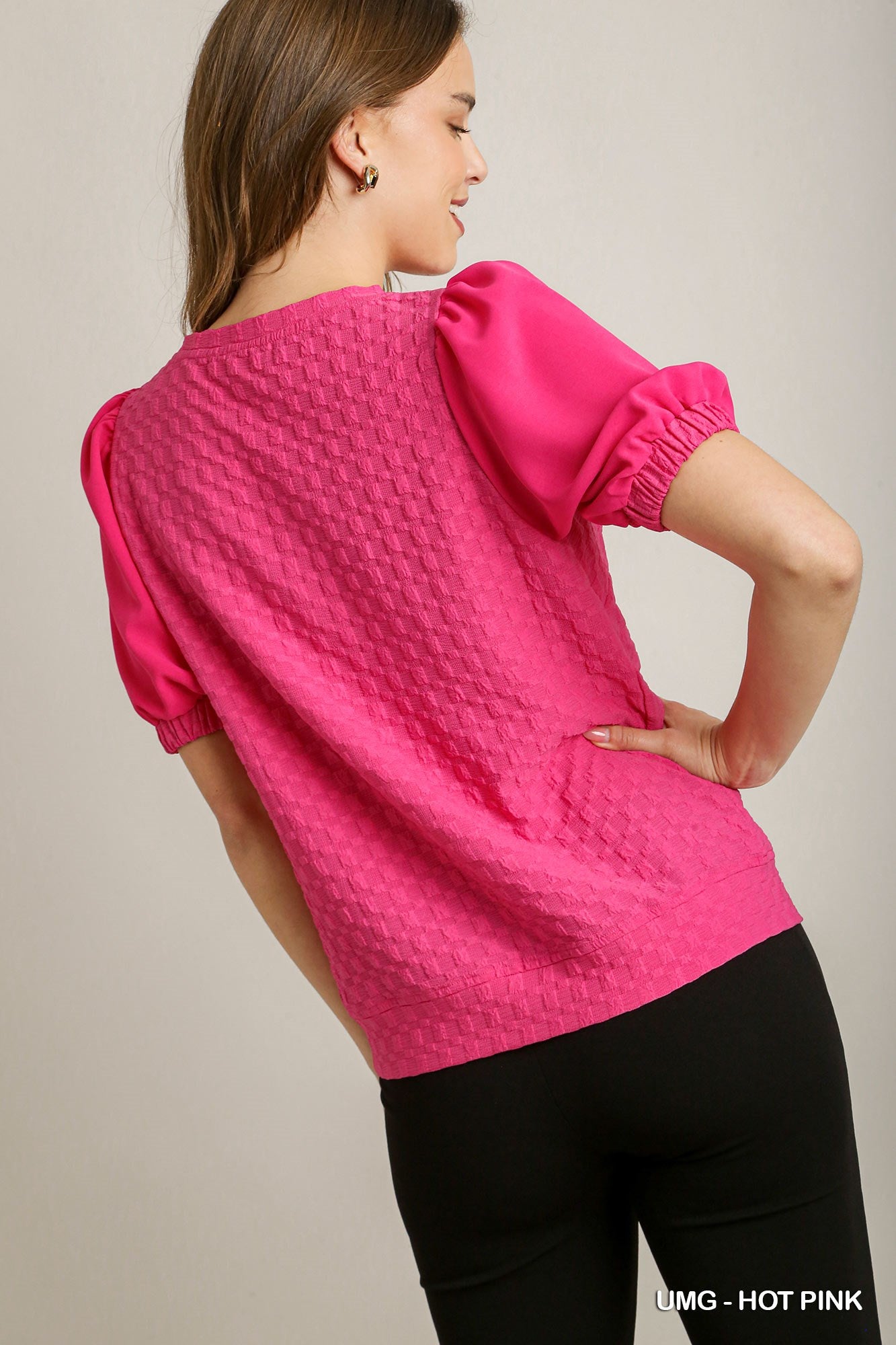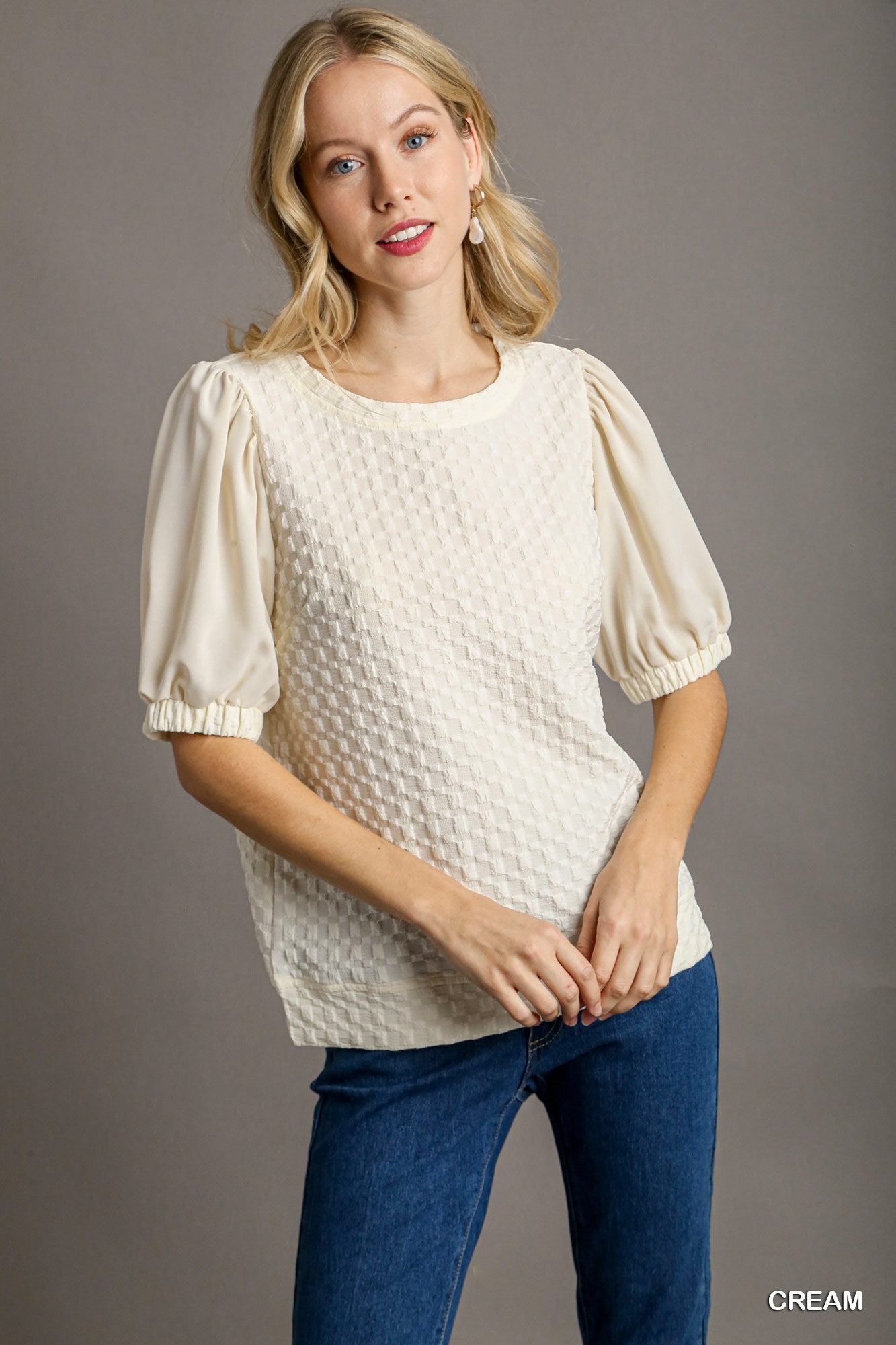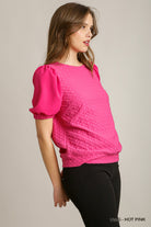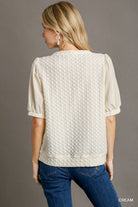 Boxy Cut Jacquard Texture Top with Solid Half Sleeve