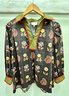Elevate your style with this charming floral print top, designed with flattering 3/4 puff sleeves and a striking contrast collar. The V-neck band adds a modern touch, while its lightweight woven fabric ensures comfortable wear all day. Unlined and non-sheer, this top offers just the right balance of coverage and breathability, making it perfect for any occasion.