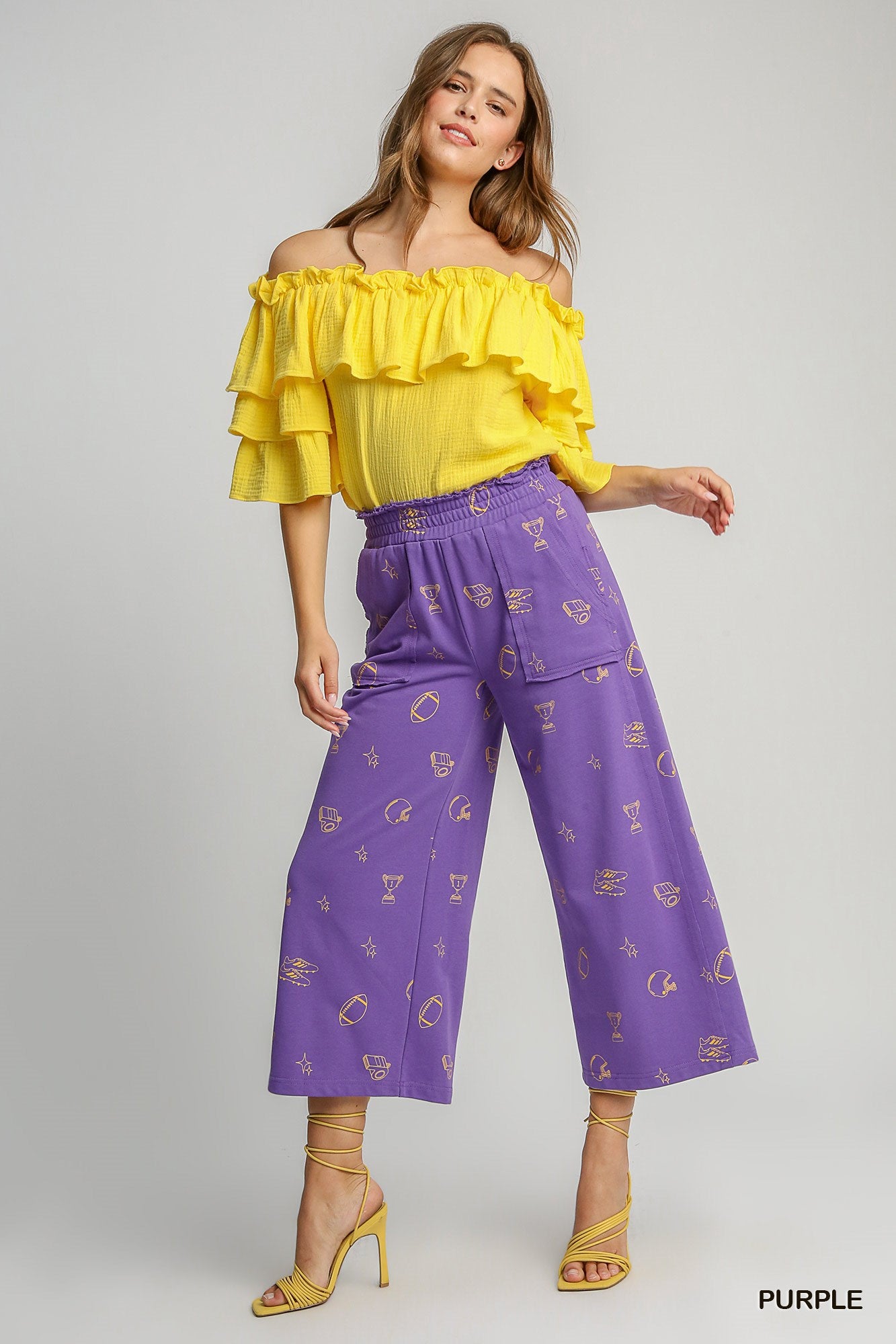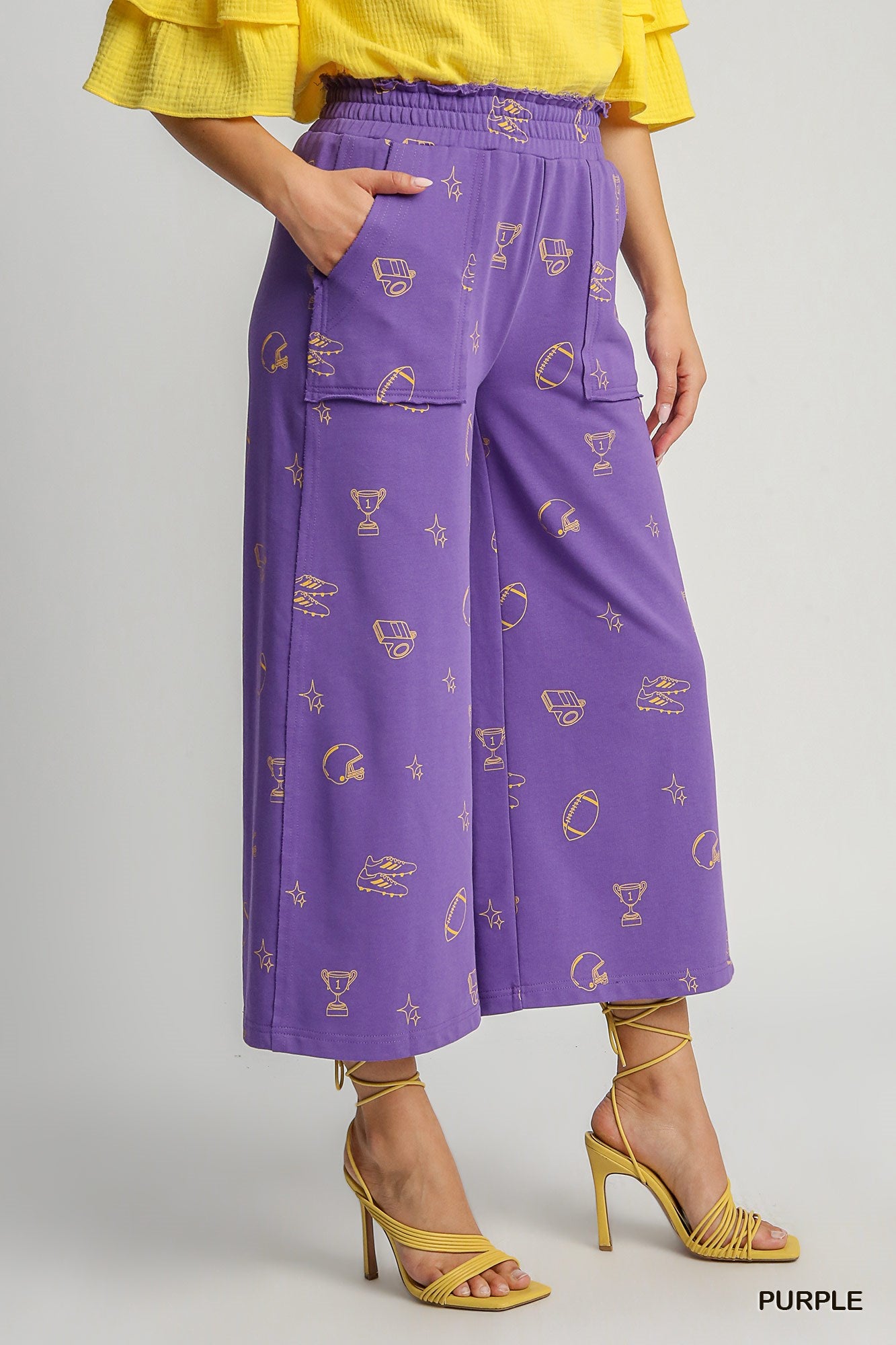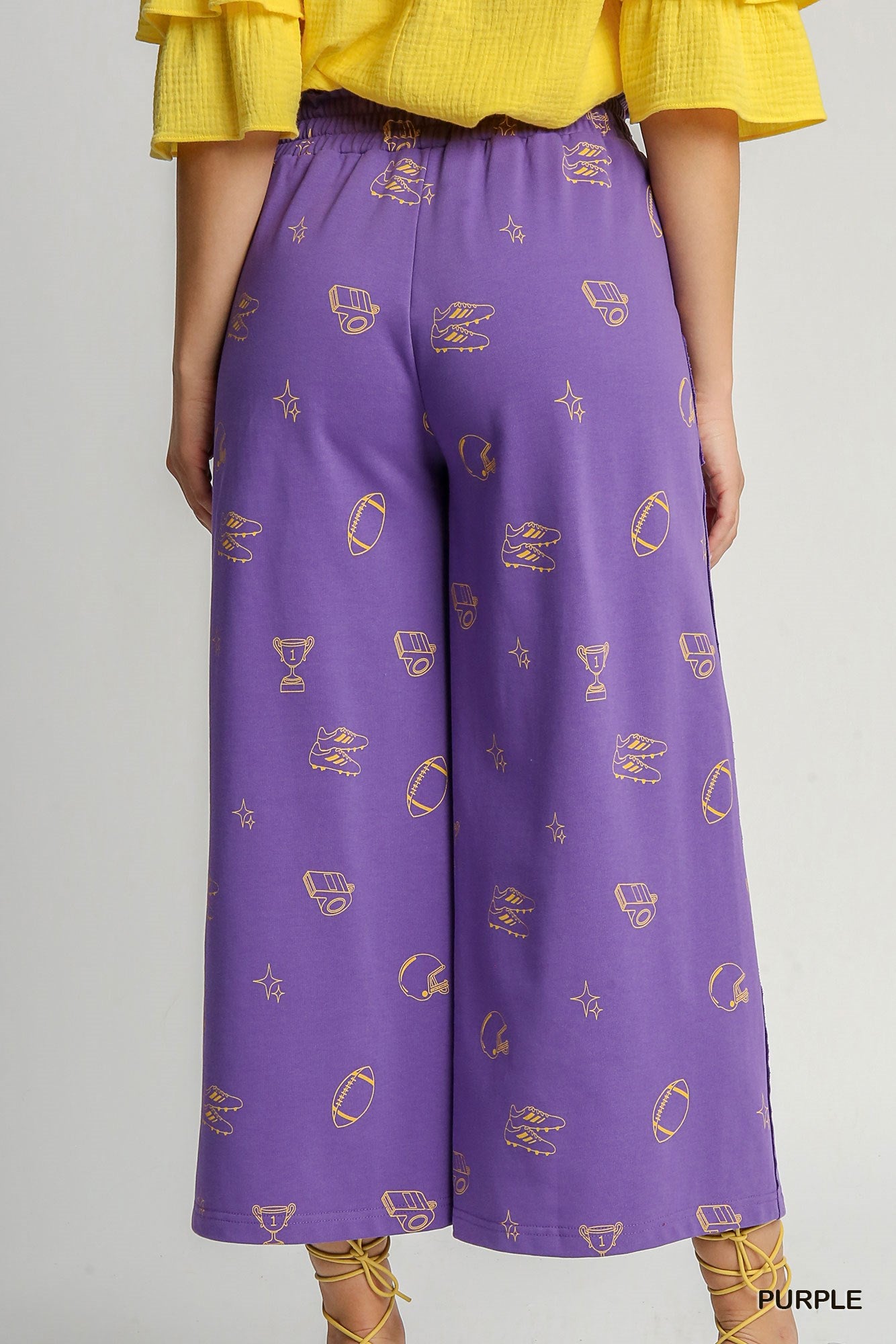 Game day, but make it fashion. These French Terry Waistband Bottoms bring bold LA-team vibes with a playful purple base and eye-catching yellow-gold accents that seriously stand out. Equal parts cozy and cool, they’re made from ultra-soft French terry that feels amazing whether you’re yelling at the TV, tailgating, or casually reminding everyone who you root for.