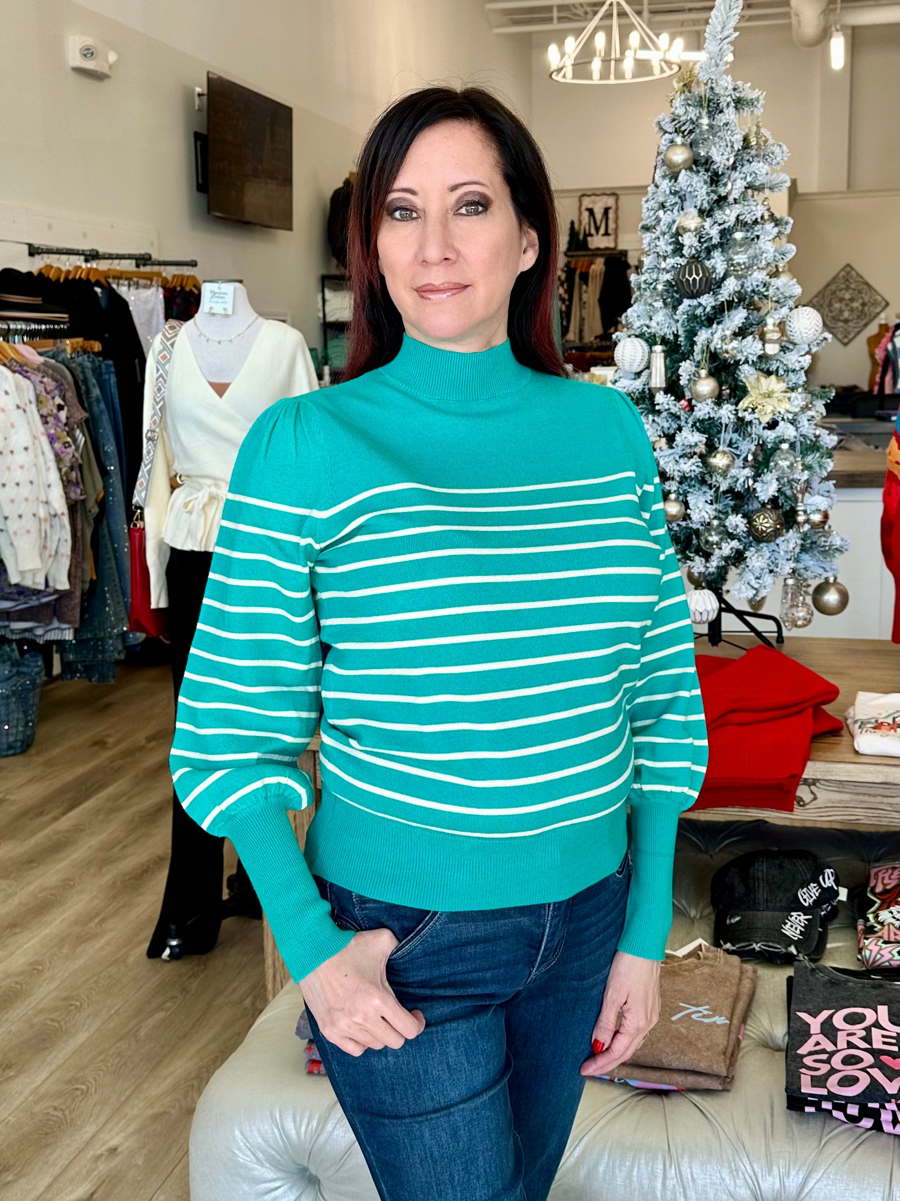 Elevate your style and stay cozy with our HIGH NECK STRIPE SWEATER. The high neck adds a touch of sophistication while the stripes add a playful element. Made with high-quality materials, this sweater will keep you warm and stylish all day long.