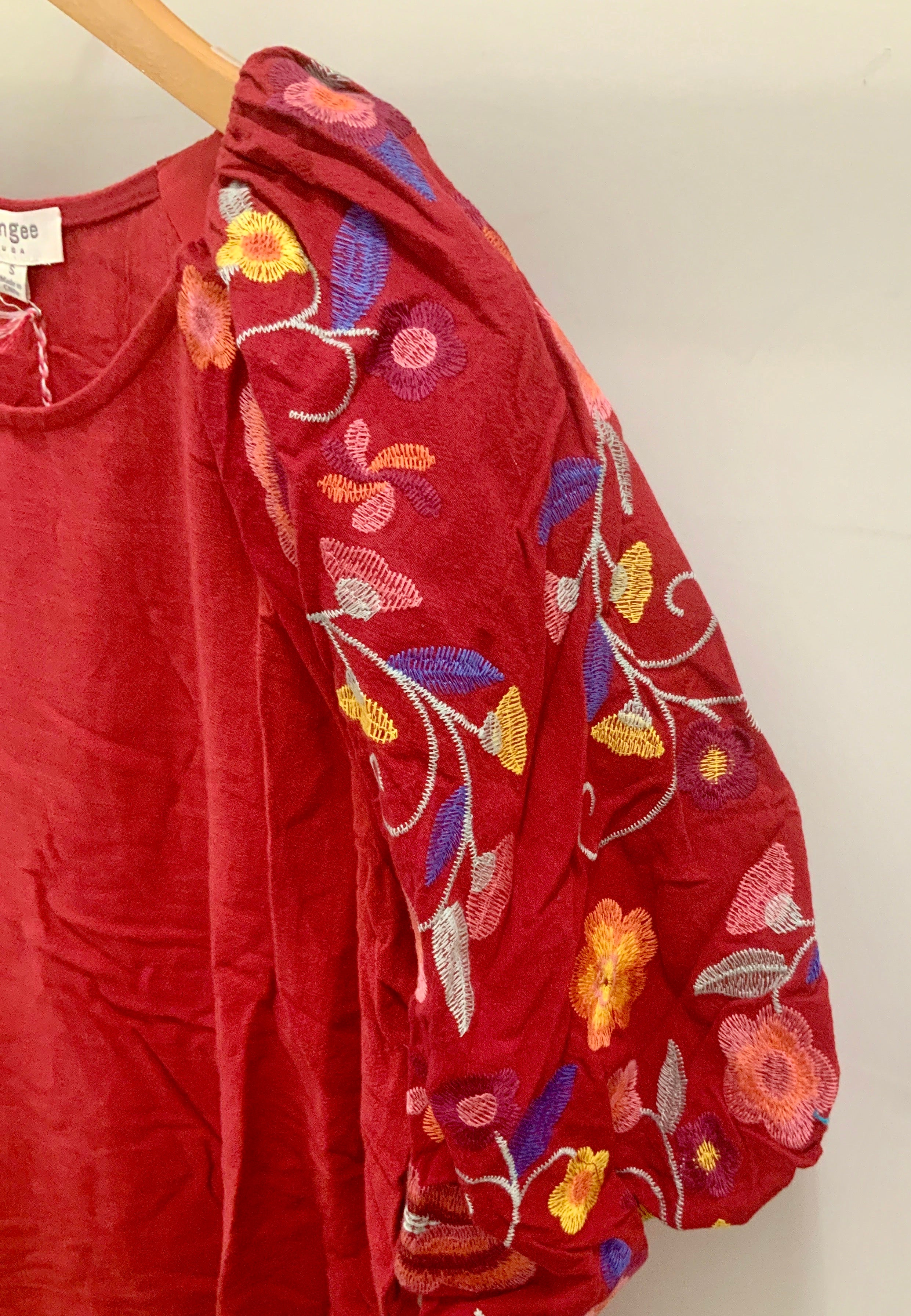 Elevate your everyday style with our Linen Blend Top, featuring delicate embroidery, balloon sleeves, and a stylish slide slit. Made from a breathable blend of fabrics, this top offers both comfort and style. Perfect for any occasion, from casual outings to special events. Get yours now and make a statement!