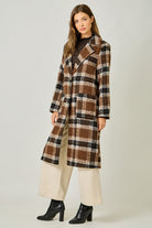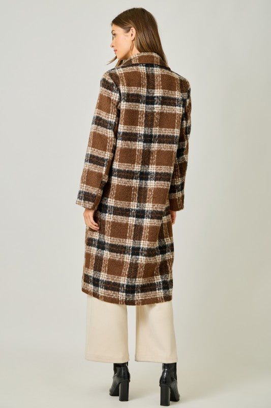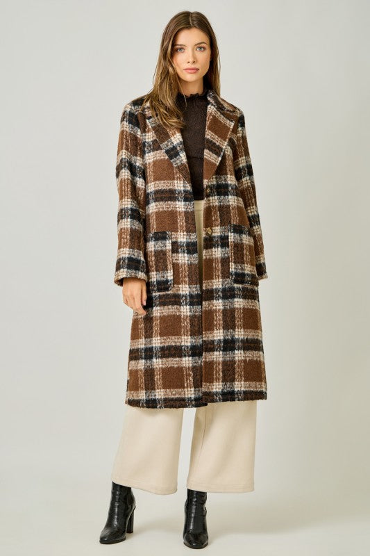 Elevate your outerwear with the Plaid Long Coat, available in versatile mocha and navy shades. Its classic plaid pattern and extended length offer timeless style and added warmth, making it perfect for layering during cooler days. Designed to complement any outfit, this coat combines sophistication with comfort for a polished, confident look wherever you go.