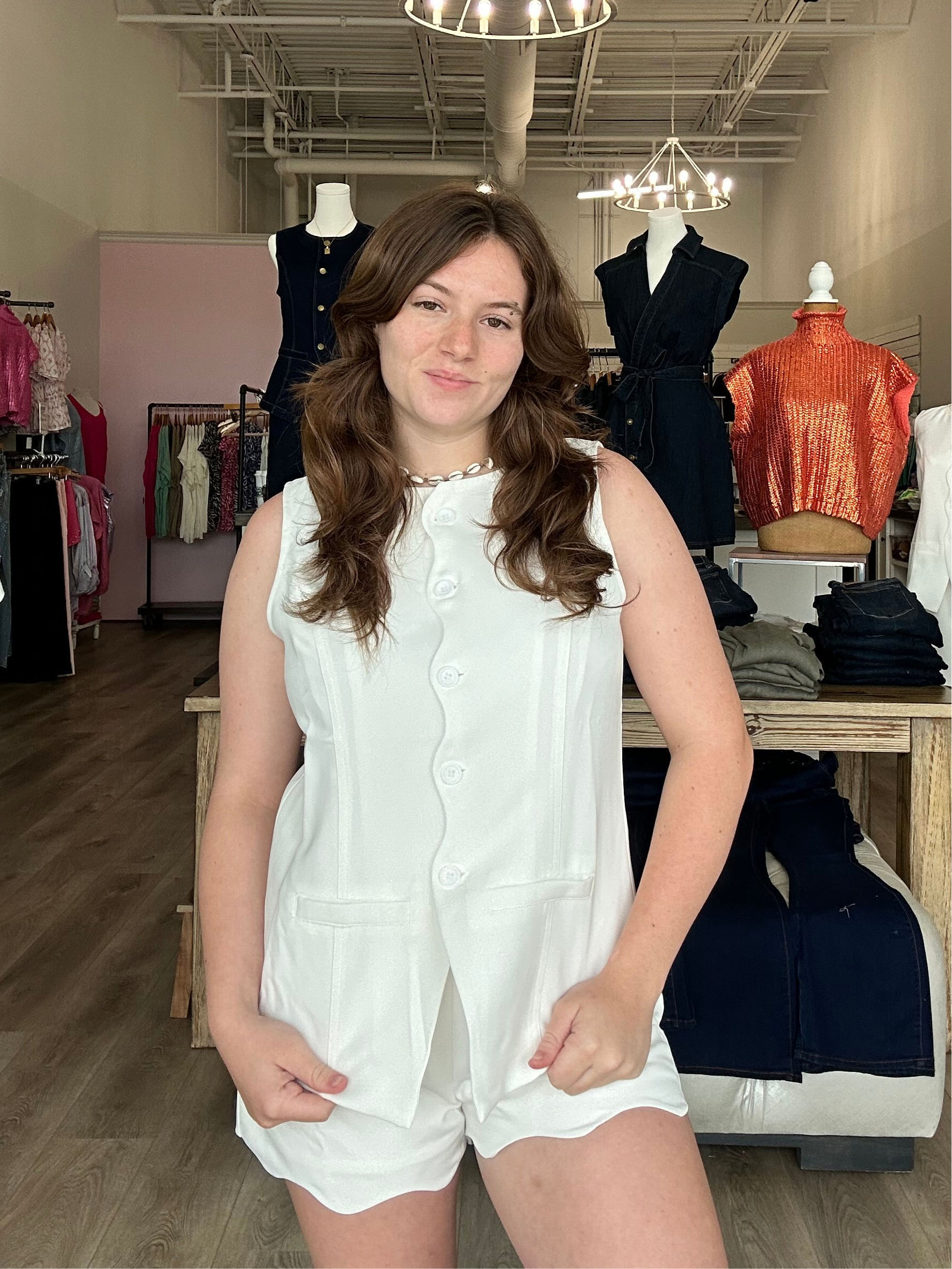 SLEEVELESS SCALLOP BUTTON DOWN LONG VEST
