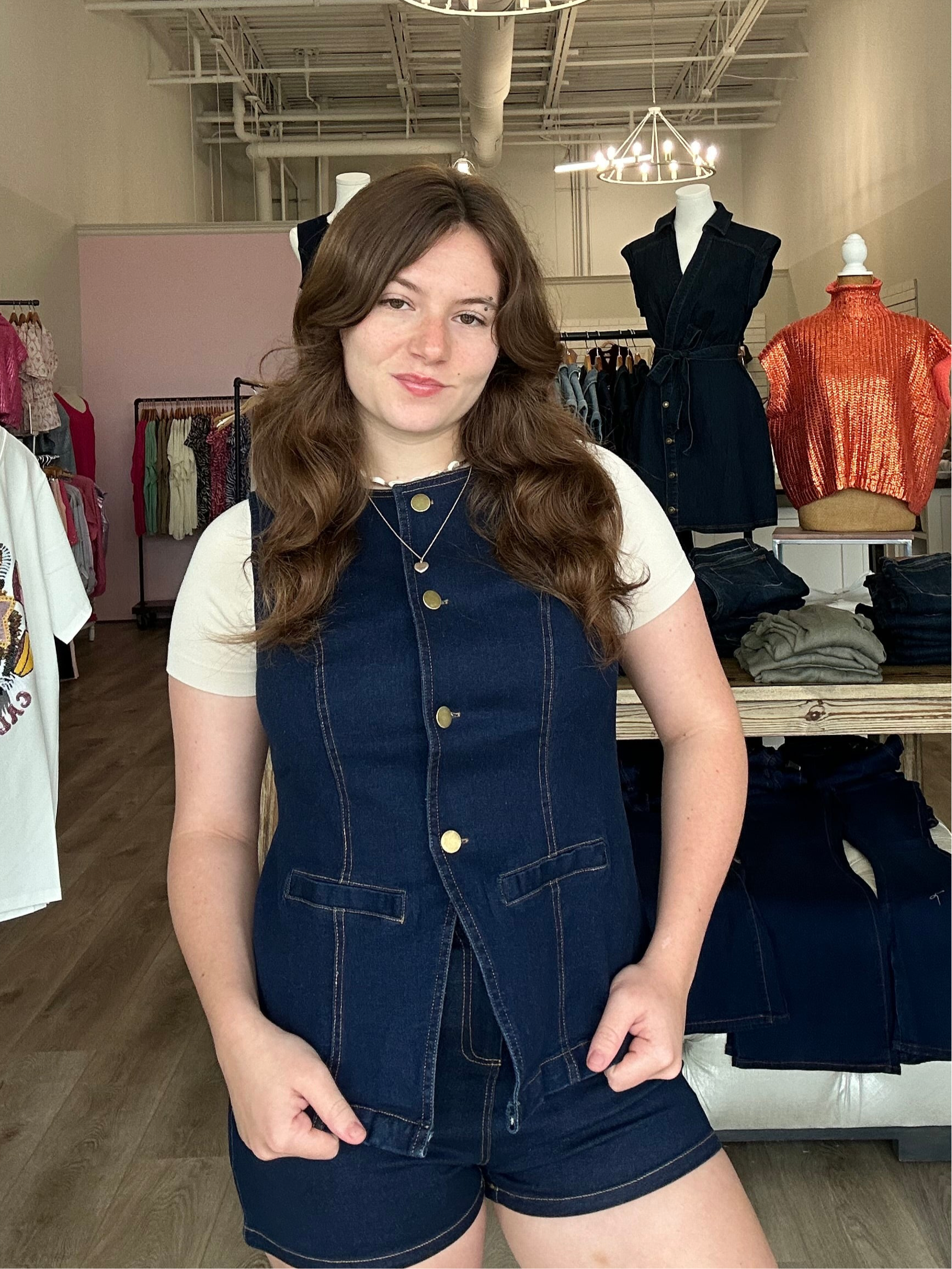 Introducing the STRETCHED DENIM BLAZER VEST! This versatile vest combines the classic look of a blazer with the comfortable stretch of denim. Perfect for any occasion, this vest adds a touch of sophistication to any outfit, while still allowing for freedom of movement. Elevate your wardrobe with this must-have piece!